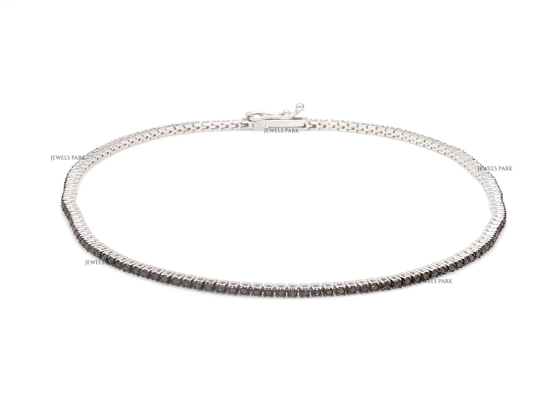 Black diamond round cut thin tennis bracelet gold | Natural black diamond bracelet gold | Mini thin ...