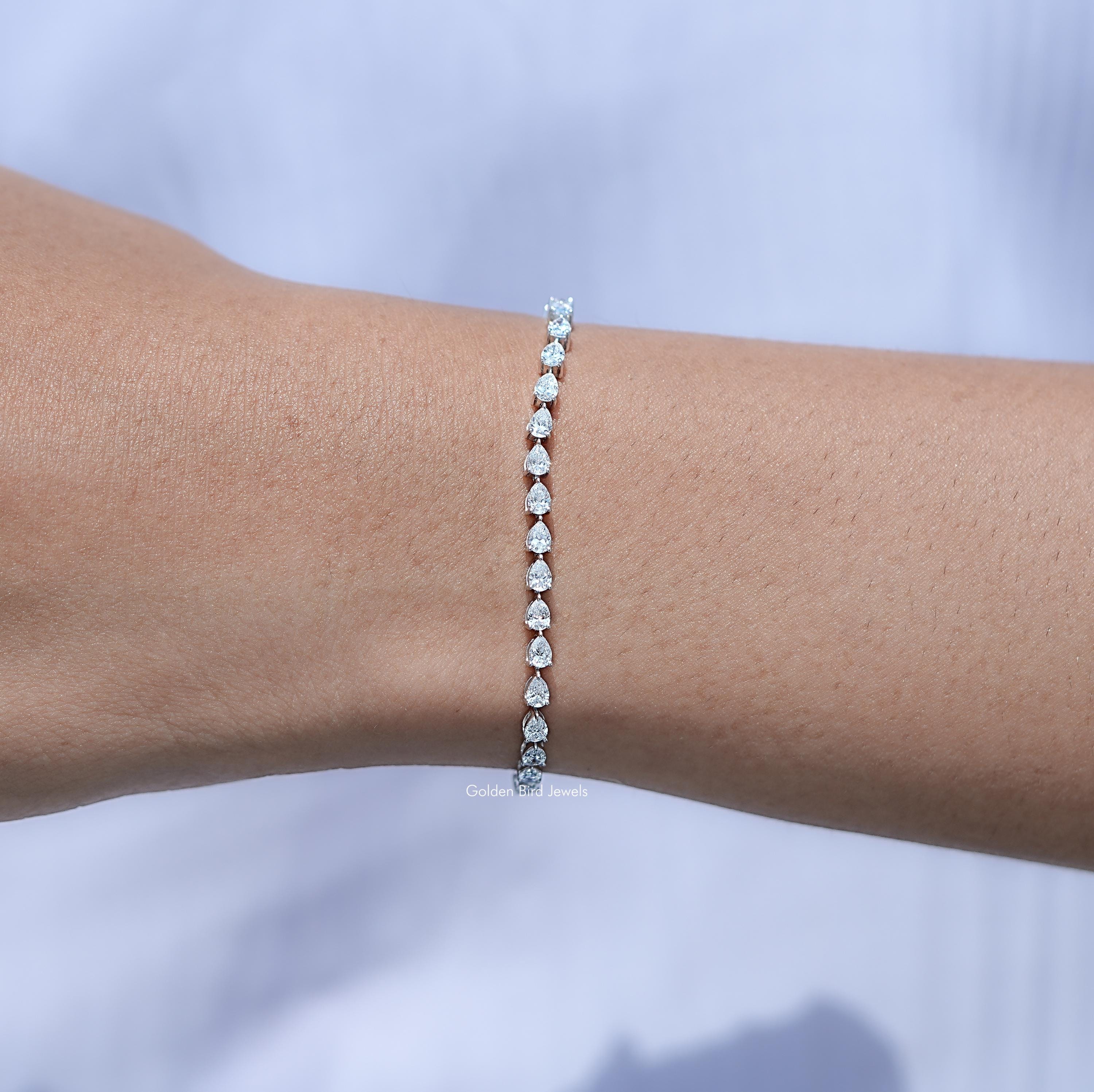 Pear Cut Lab Diamond Tennis Bracelet, EF-VS Diamond Wedding Bracelet, CVD Diamond Bridal Bracelet, 1...