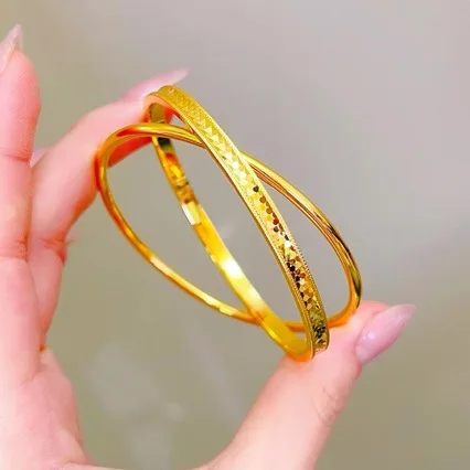 AU999 24K Gold Double - Ring Bracelet | Hollow - carved diamond - s...