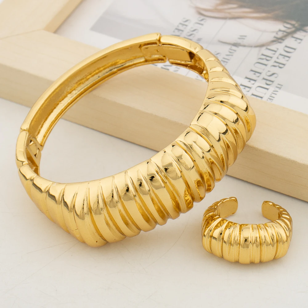 African Bangle with Ring Jewelry Set for Ladies 18k Gold Color Copper Bracelet Finger Ring 2Pcs Set ...