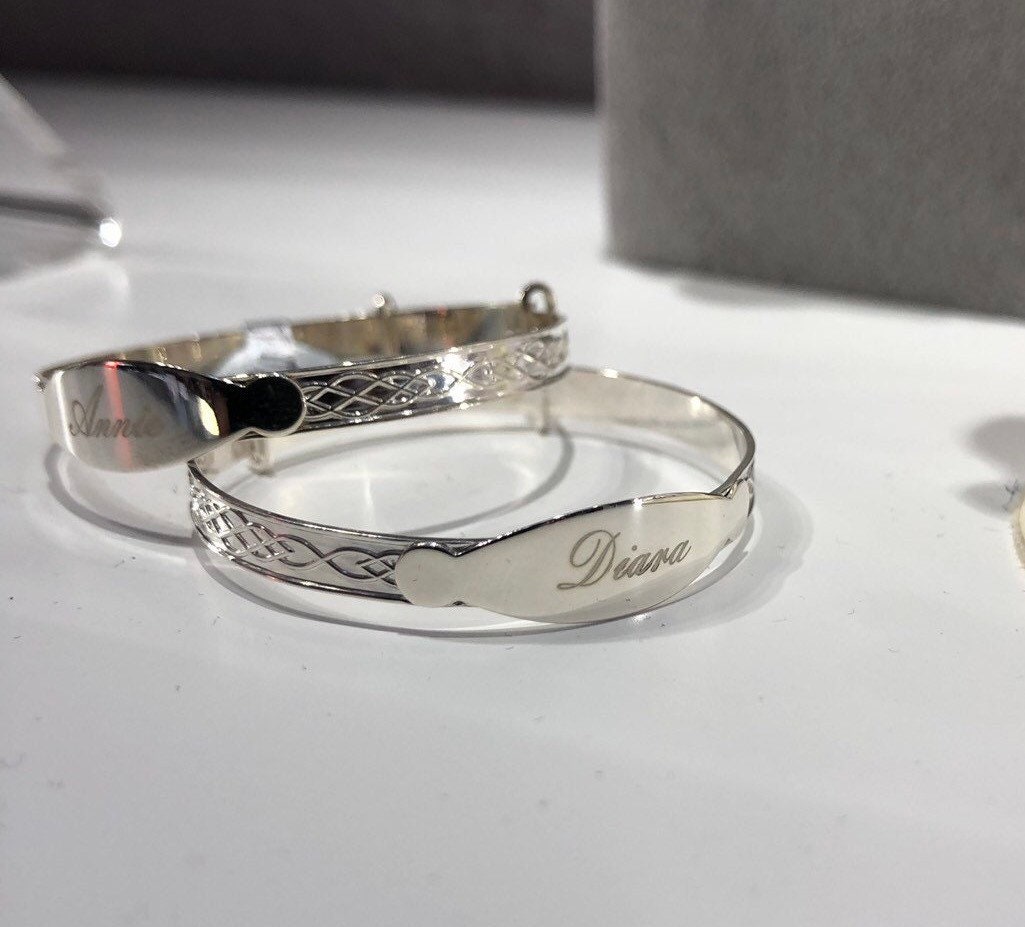 Sterling Silver Celtic ID Plate Bangle - Personalized Baby Bracelet