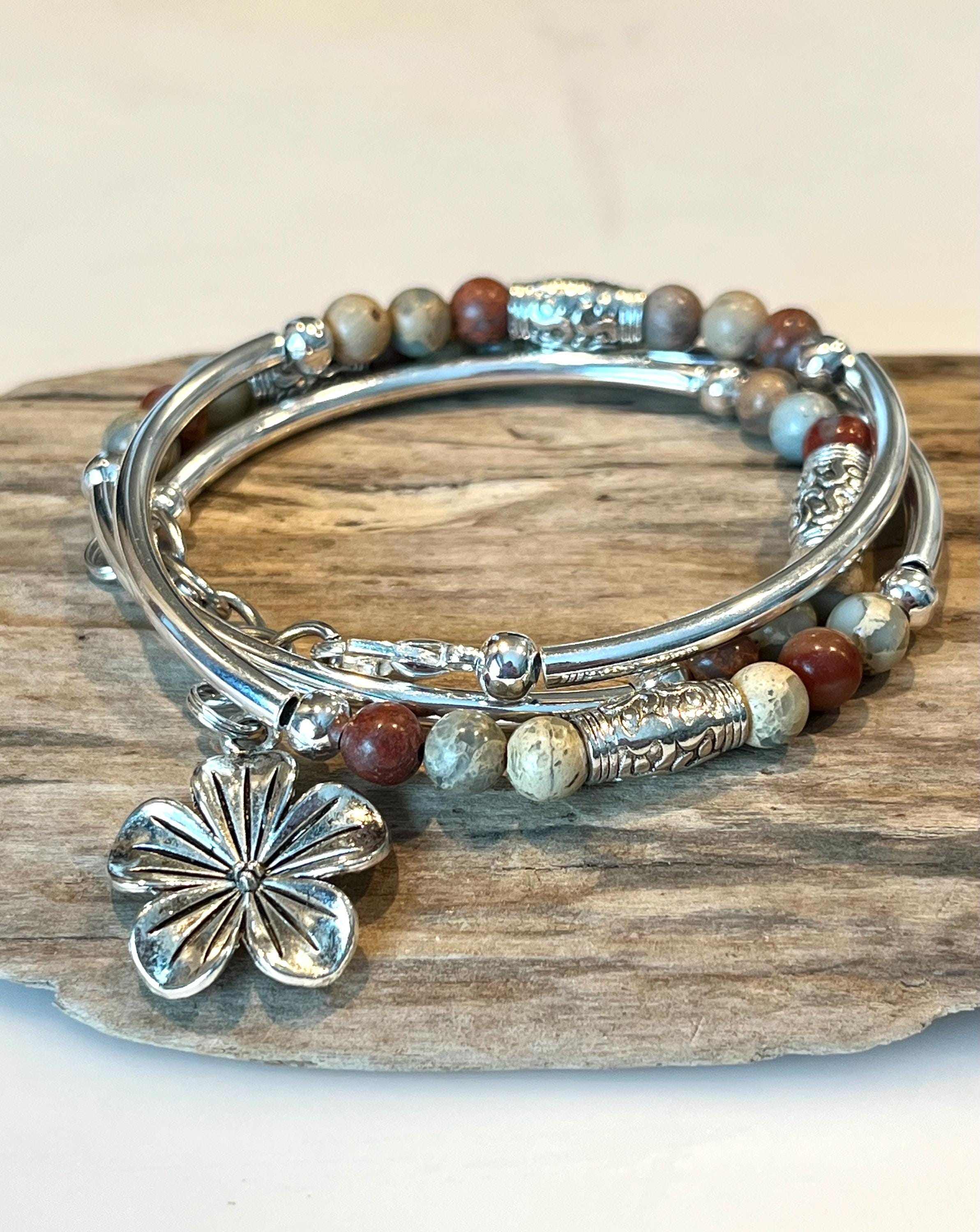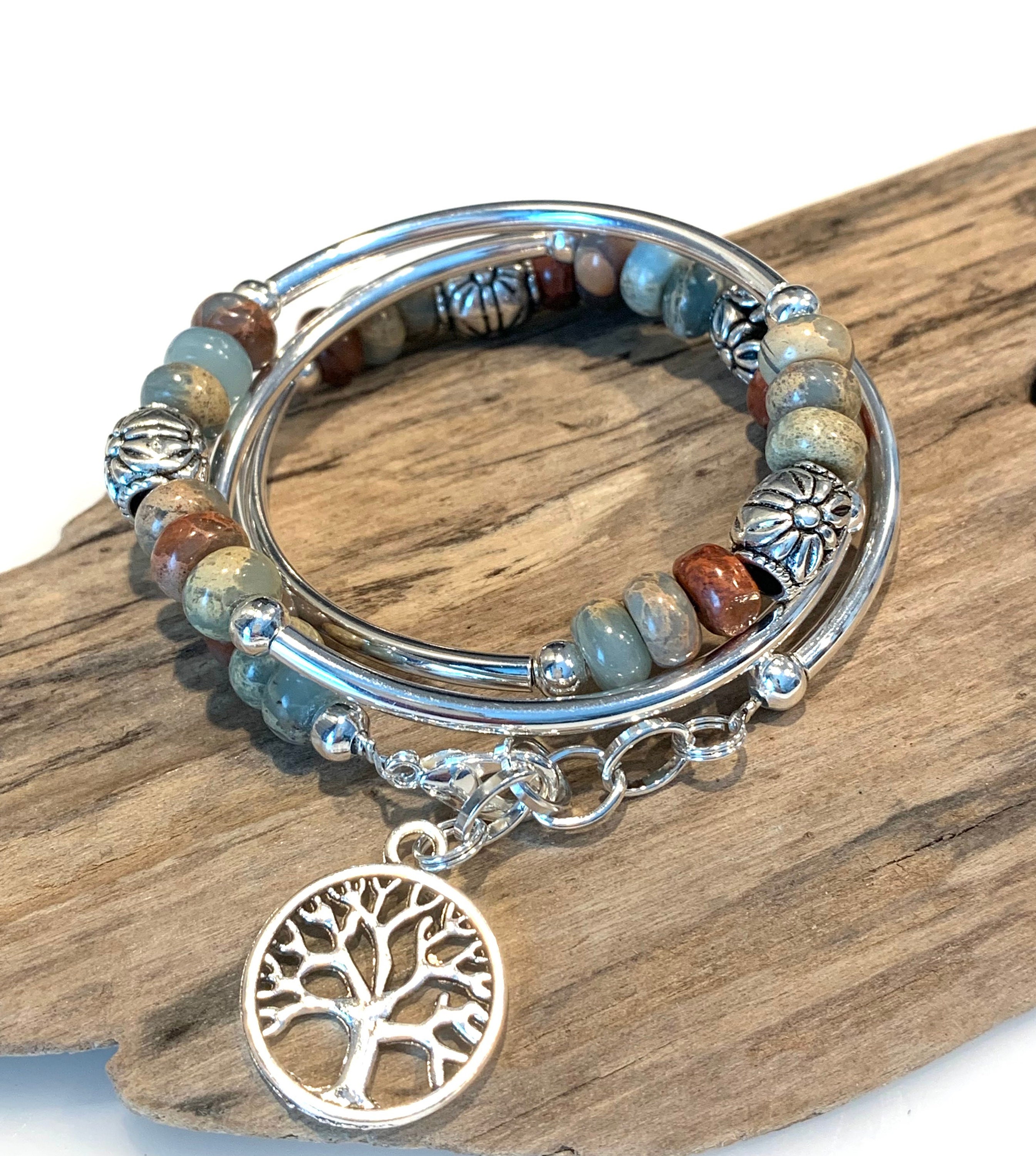 Boho Wrap Bracelet, jasper stone Tube Wrap, silver wrap bracelet, n...