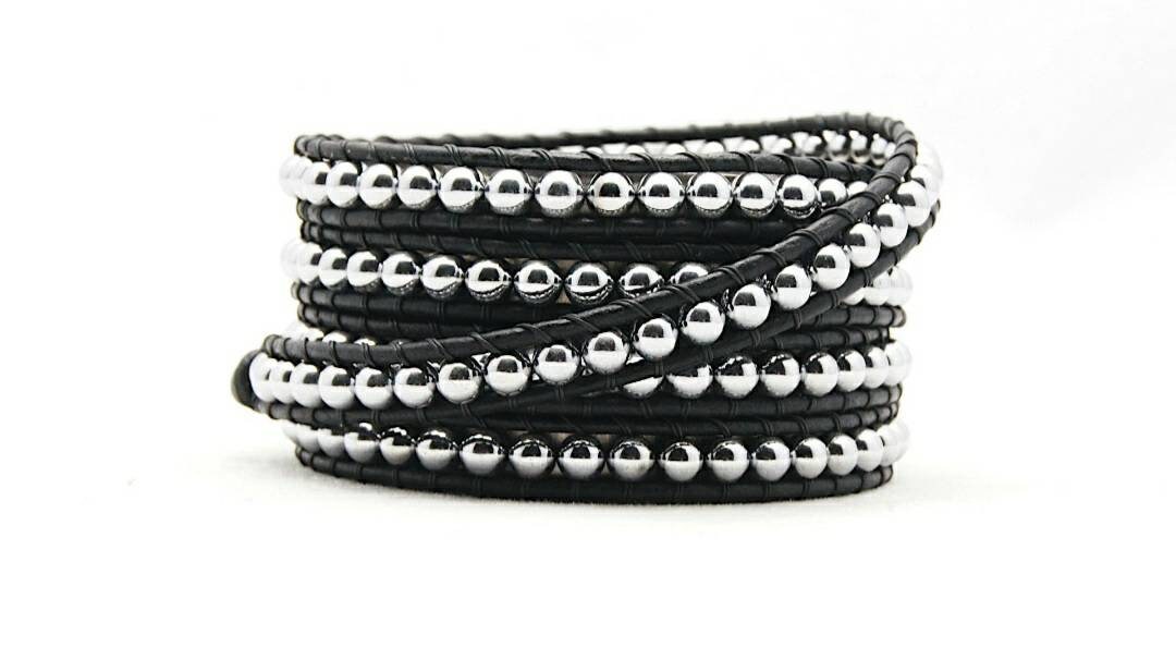 "Features: Length:33\" / 34\" / 35\"L. Wrap bracelet with black leather cord. 4M...