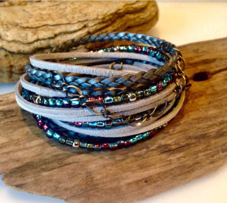 Boho Leather Wrap/Leather Bracelet,Women's Wrap, Suede Wrap/Metalic...