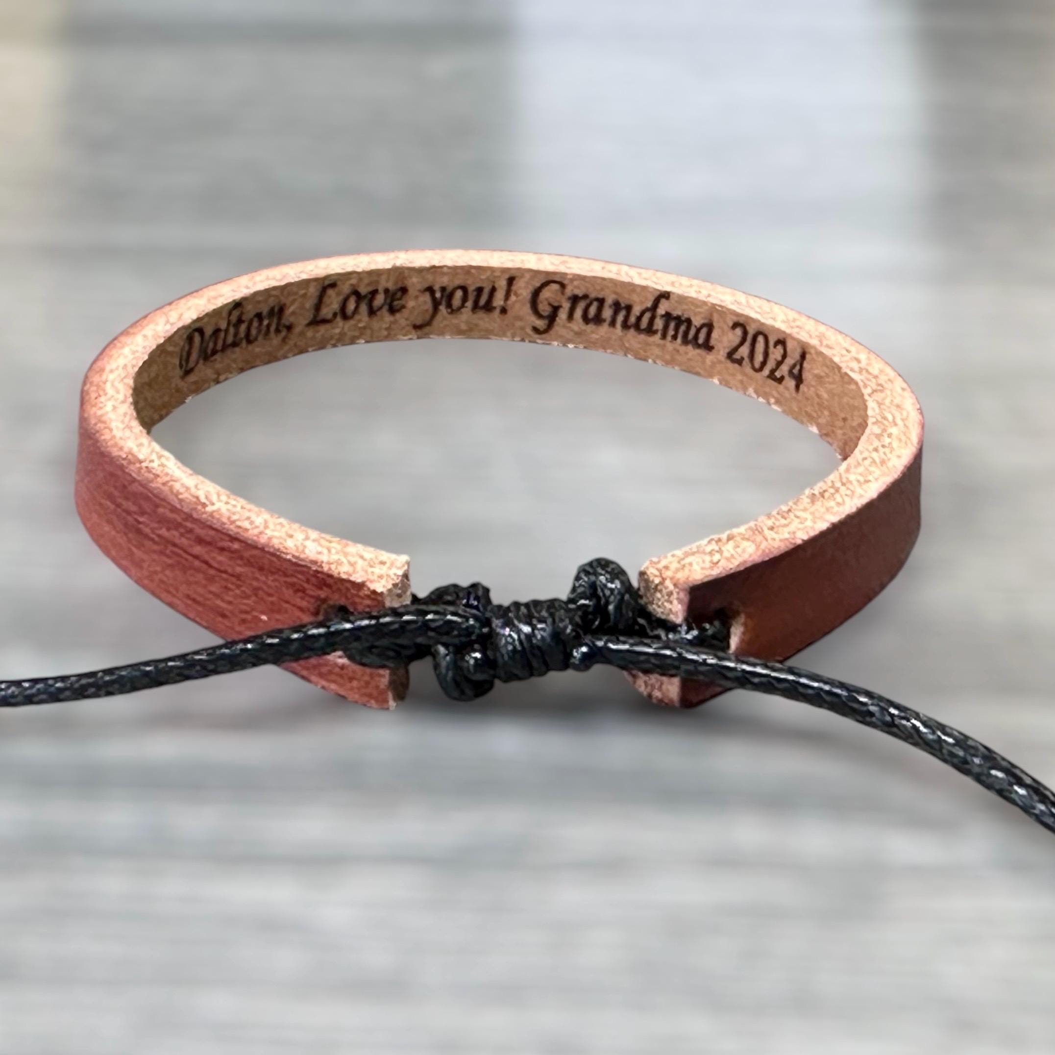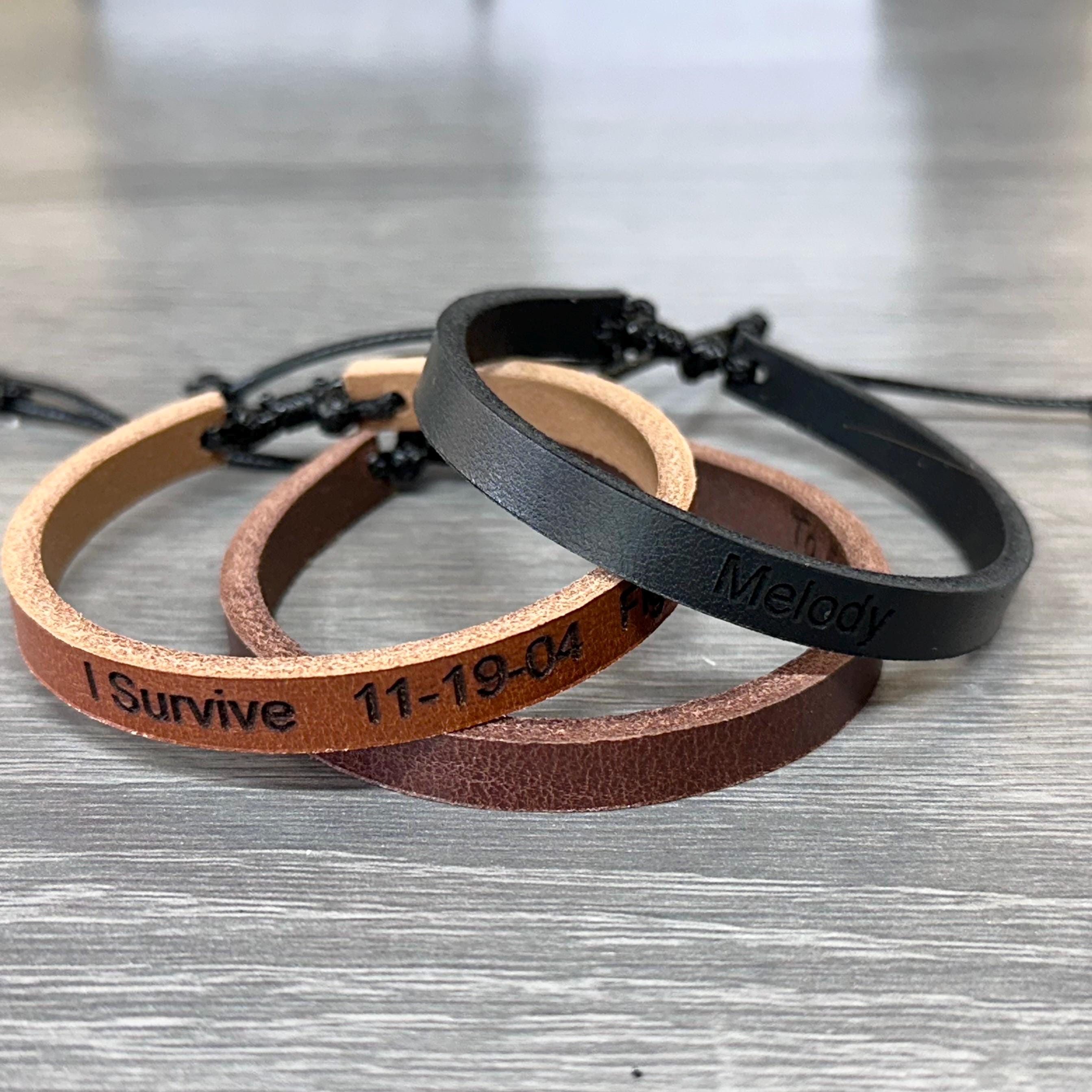 Engraved Leather Bracelet, Personalized Leather Band, Custom Leathe...