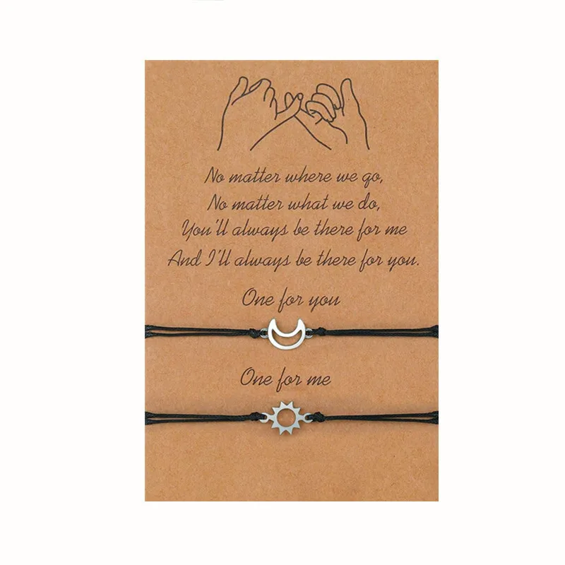 Wu's 2022 New Couple Card Bracelet European and American Alloy Moon Sun Star Wax Wire Braided Card B...