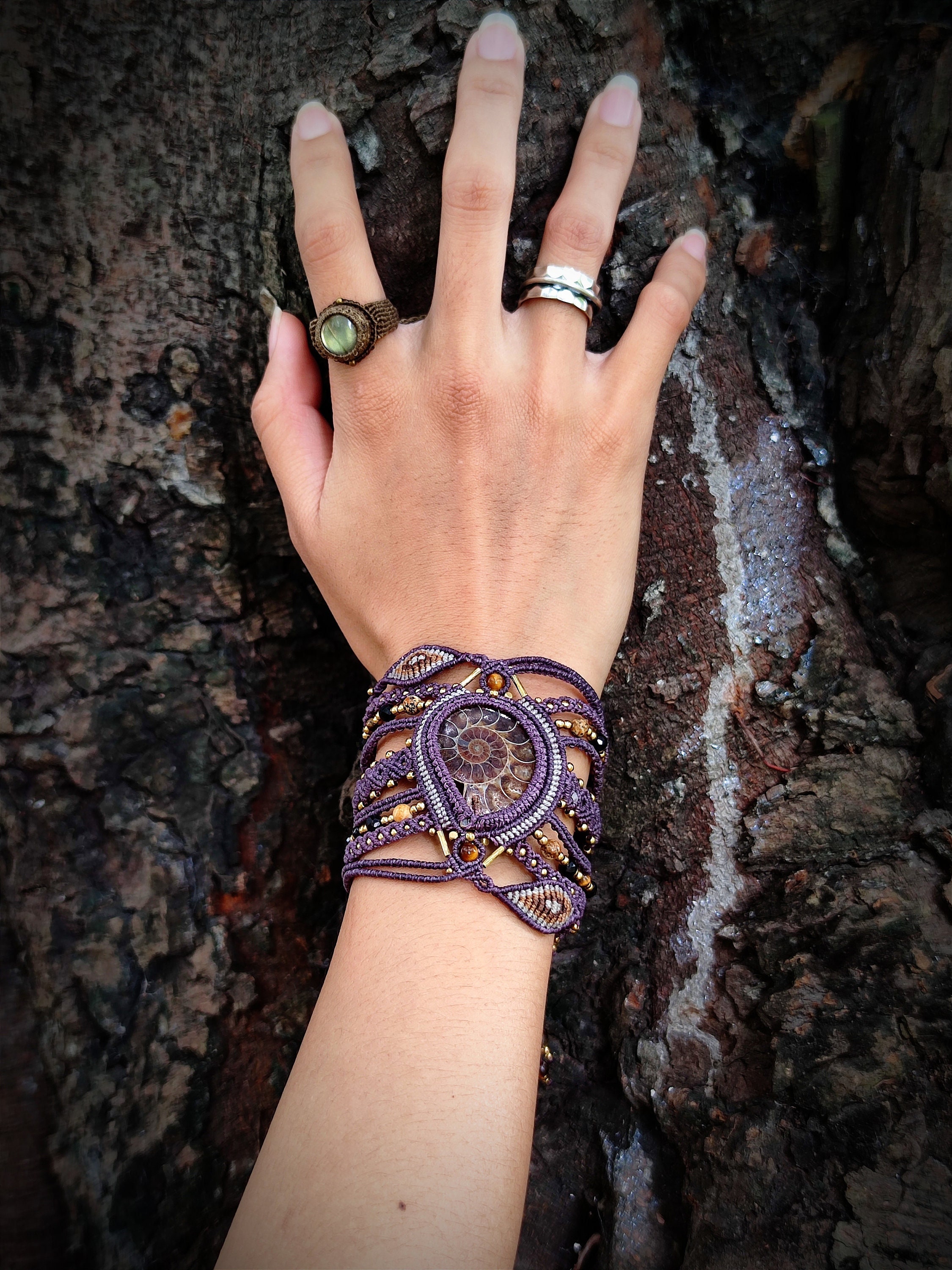 Natural Ammonite Fossil Bracelet, Rare Spiral Shell Jewelry, Healin...