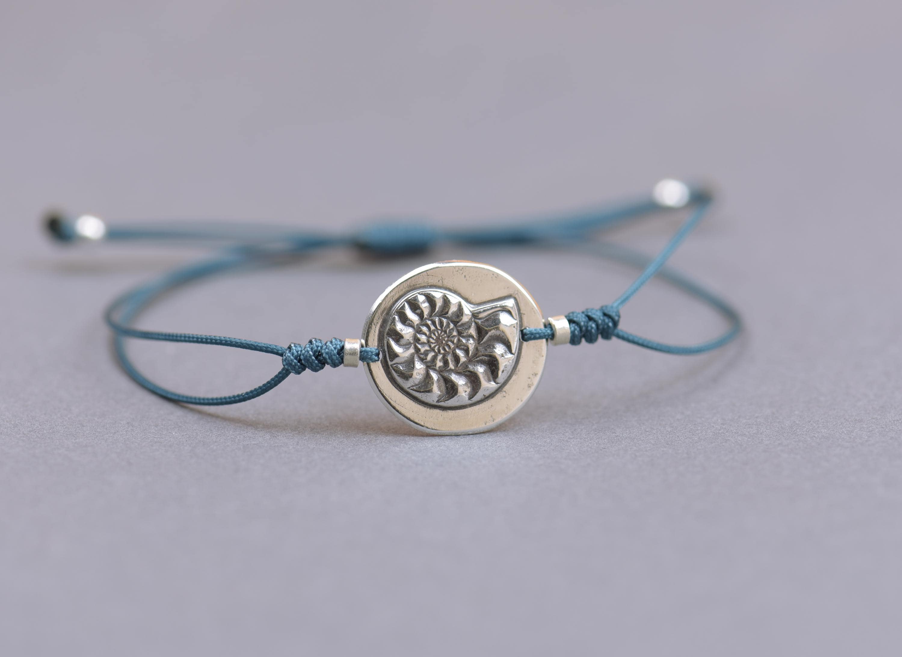 Sterling silver tiny fossil ammonite bracelet.Fossil lovers, Paleon...