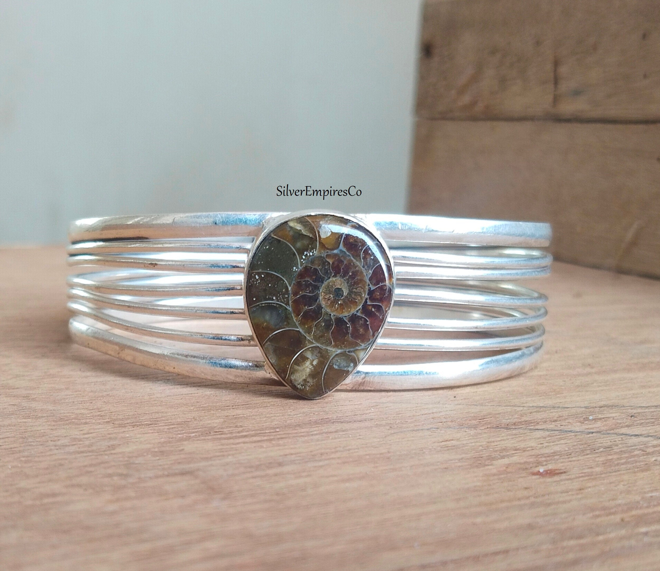 Ammonite Fossil Bangle, 925 Sterling Silver Bangle, Women Bangle, Ammonite Fossil Jewelry, Handmade ...