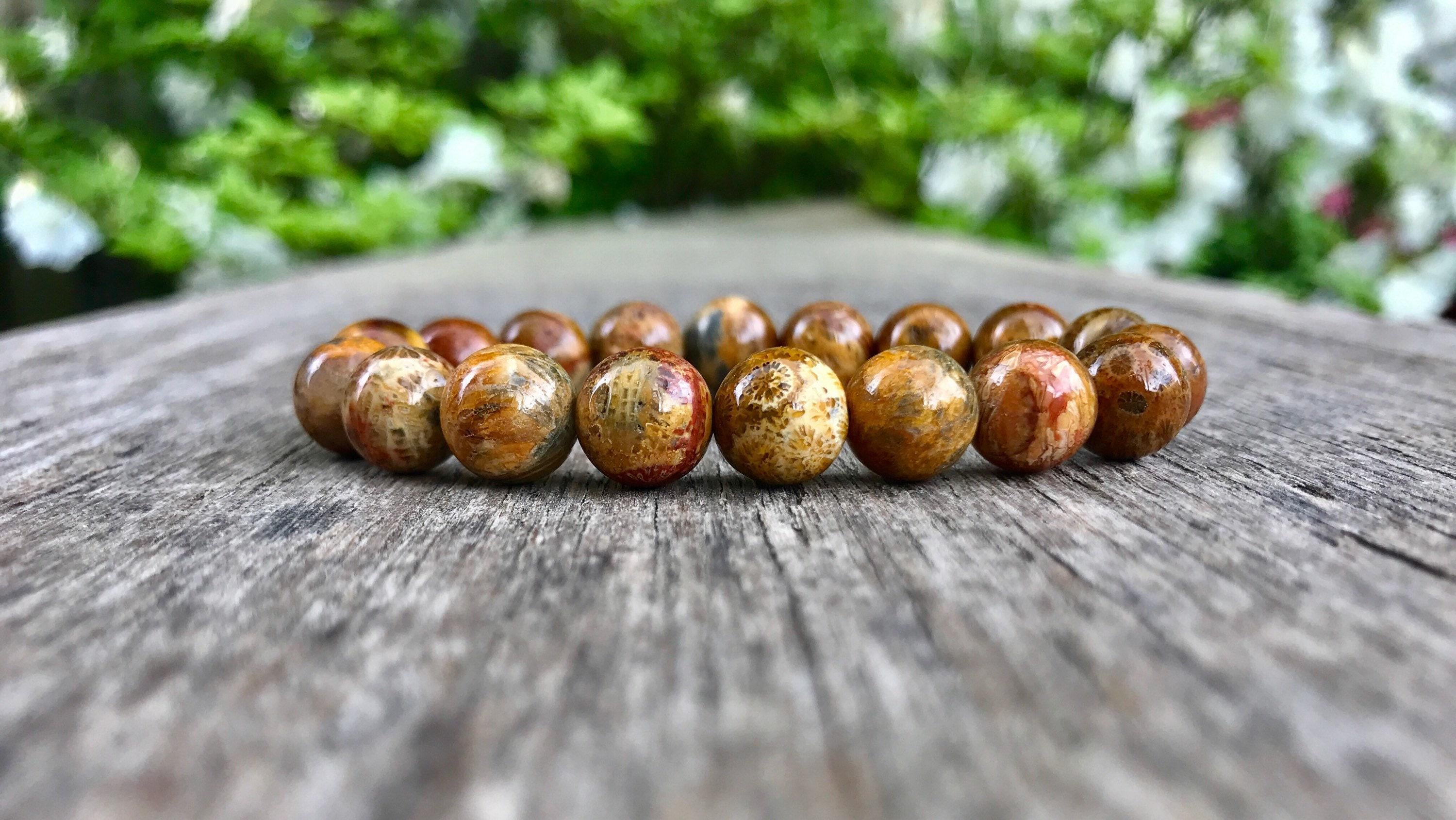 Fossil Coral Bracelet 8 mm, Fossil Jewelry, Fossilized Coral Bracel...