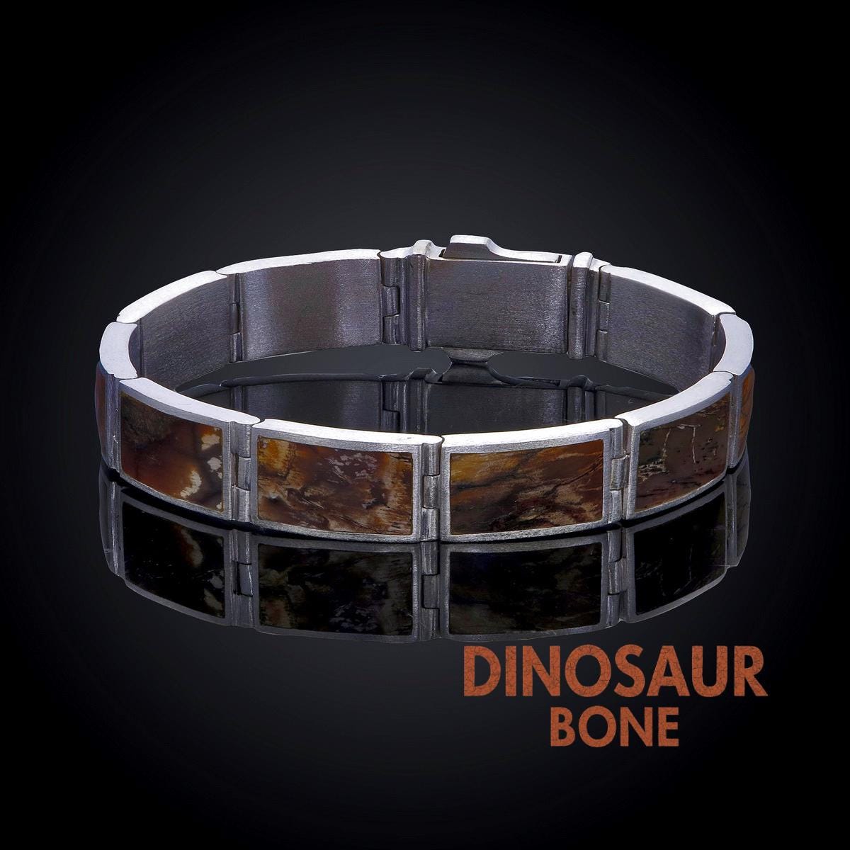This showpiece bracelet has been expertly designed to exhibit our magnificent T-Rex Dinosaur Bone Fo...