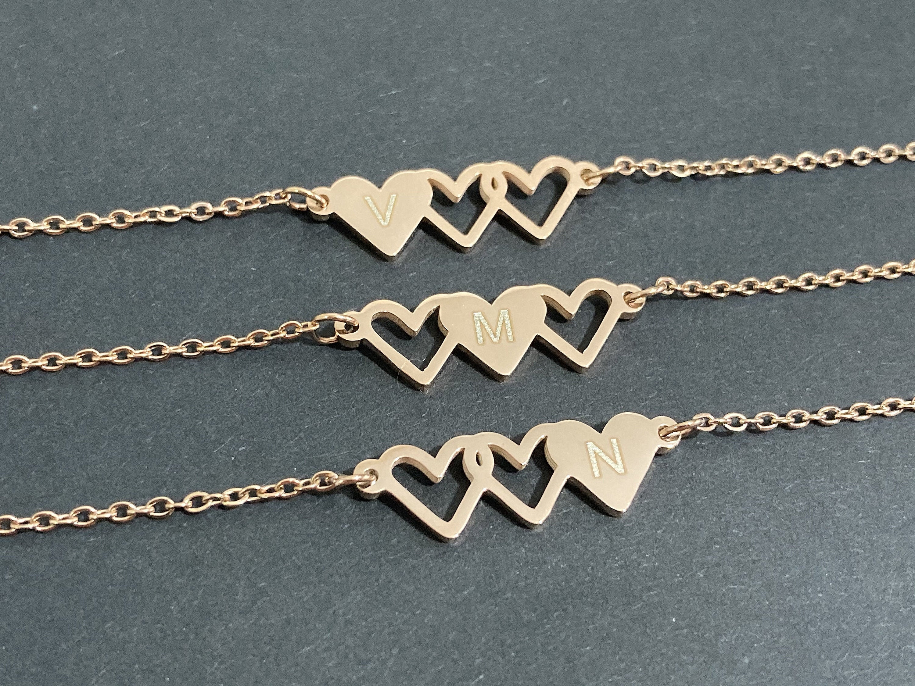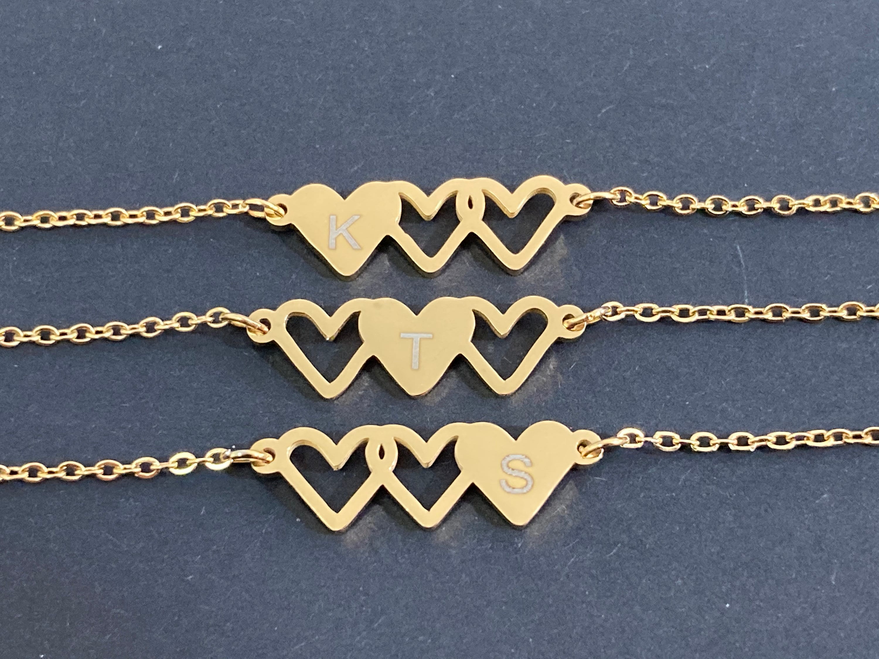 3 Heart Bracelet,Three Heart Bracelet,Best Friend Bracelet For 3,Si...