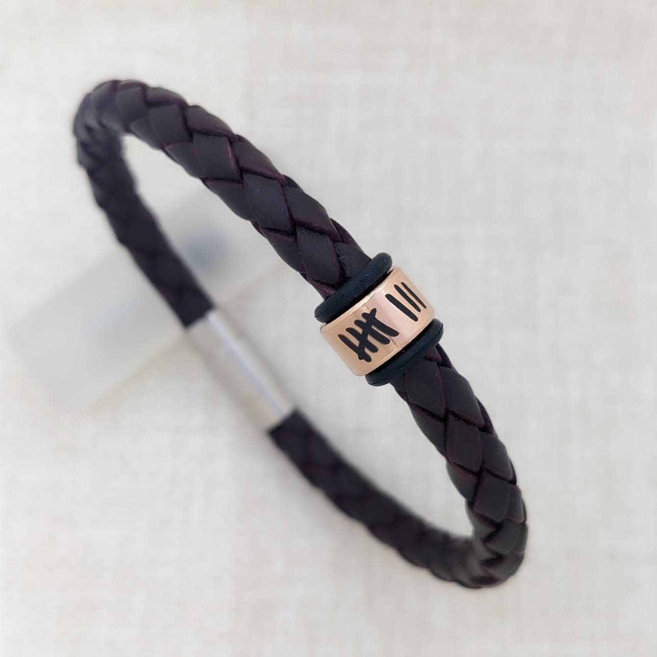 This beautiful bracelet is made of high-quality 6mm soft navy braided leather and finished with a be...