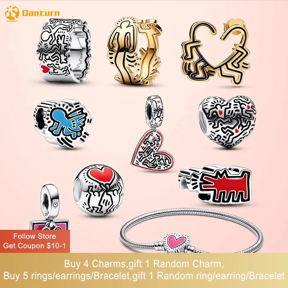 Danturn 925 Sterling Silver Walking Heart Stud Earring Love Figures Radiant Angel Heart Charms fit S...