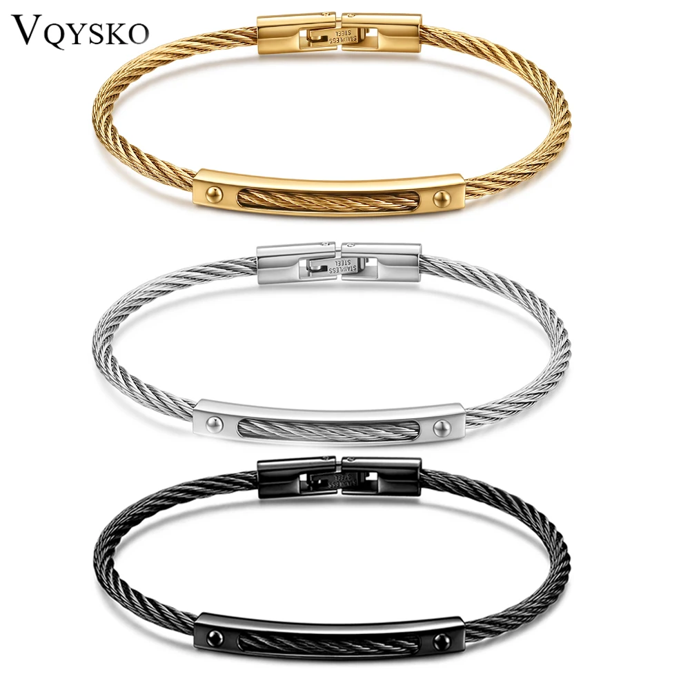VQYSKO Stainless Steel Thin Wire Twist Bracelet Masculine Jewellery...