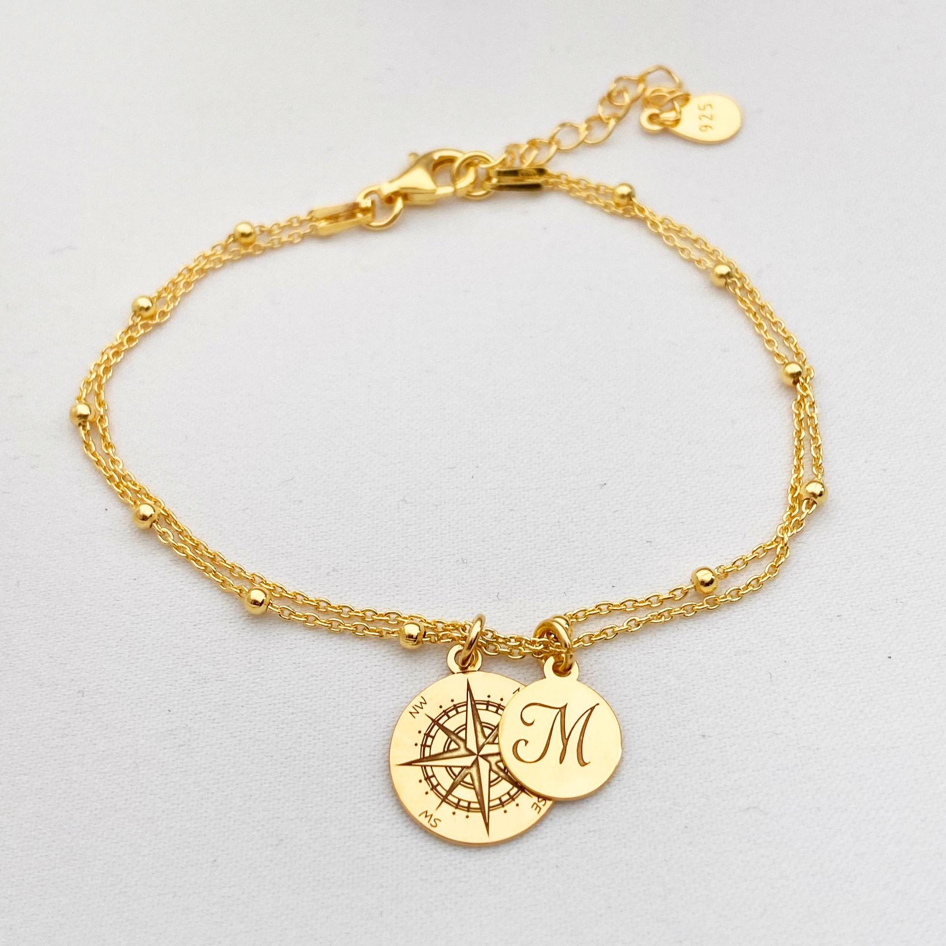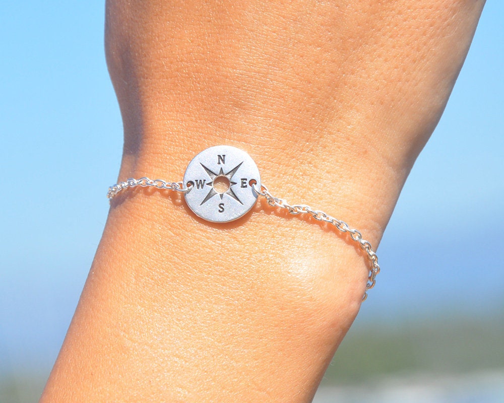 Compass Bracelet, Personalized Silver or Gold Compass Bracelet, Fri...