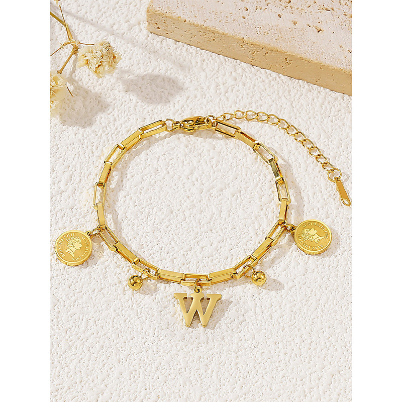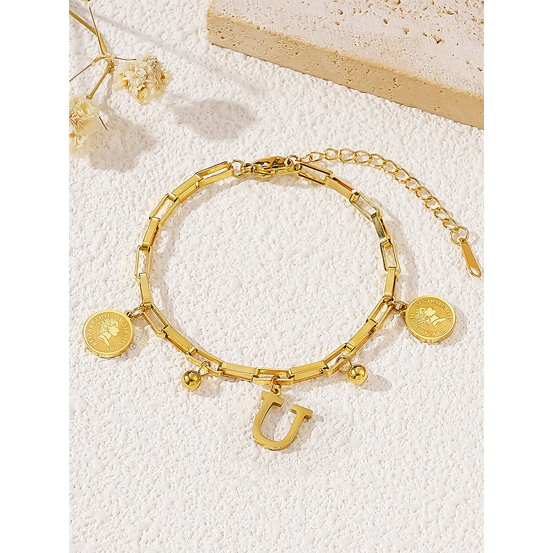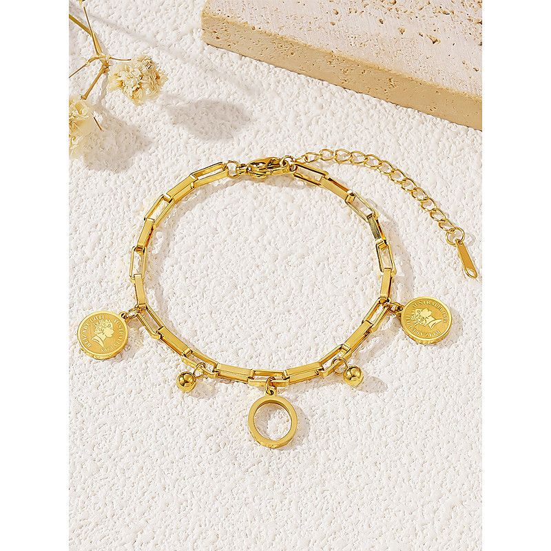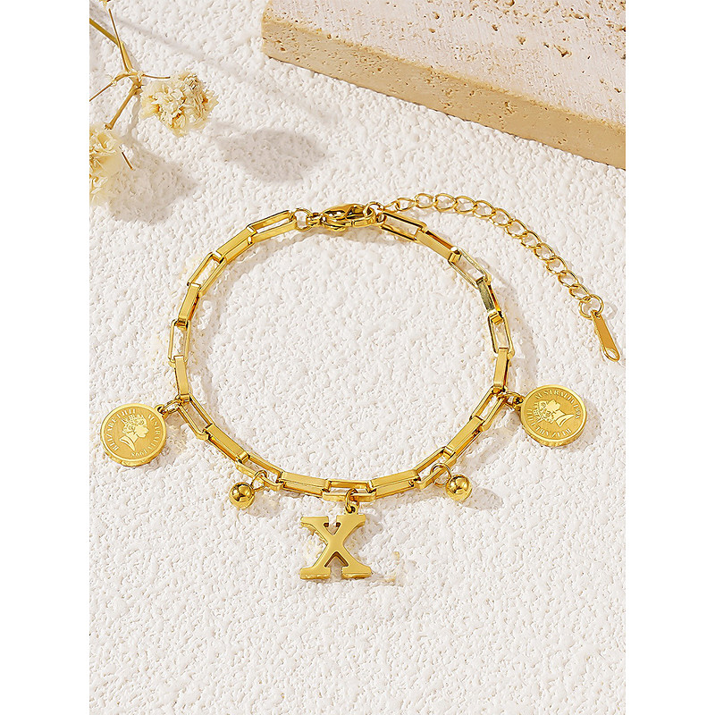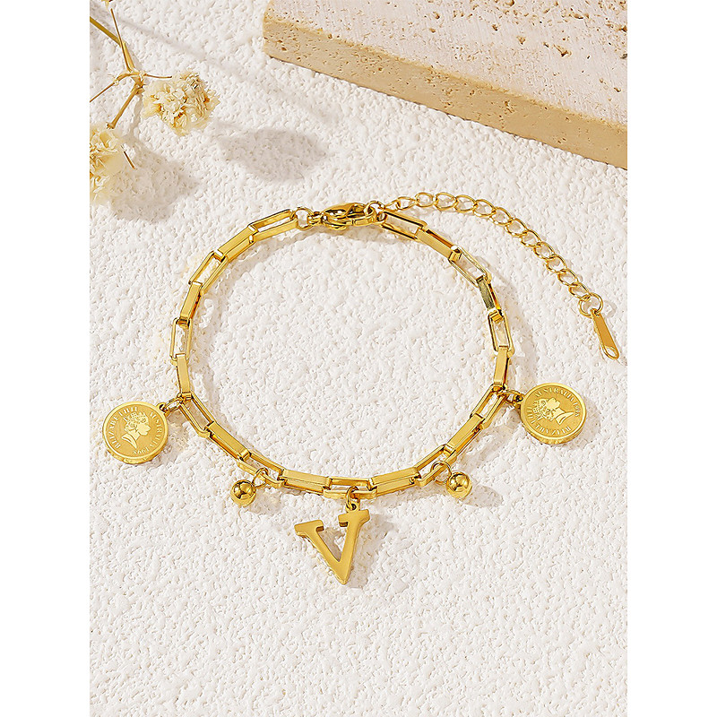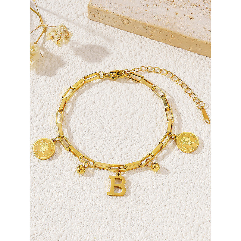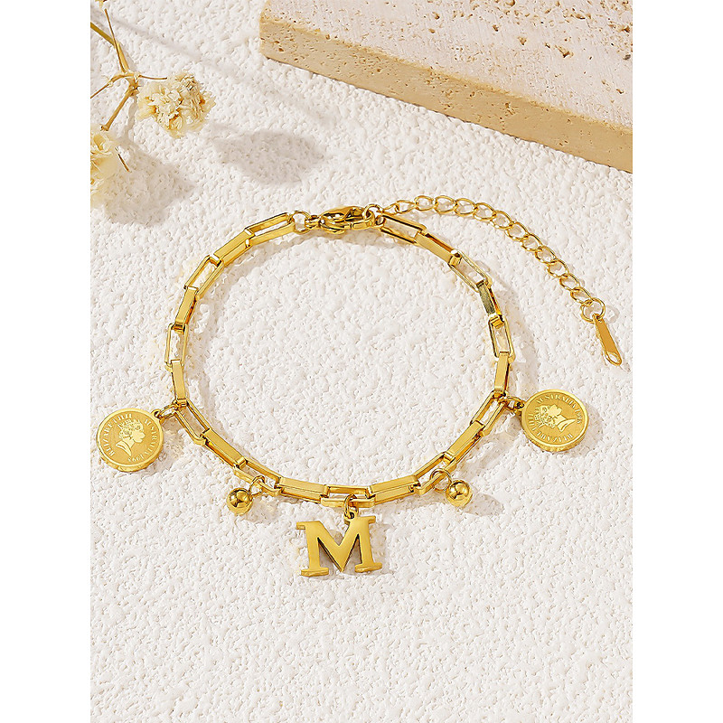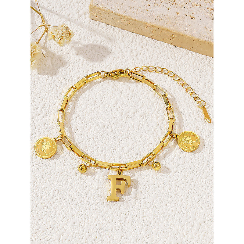 Women's Gold-Plated Alphabet Letter Bracelet with Coin and Ball Cha...