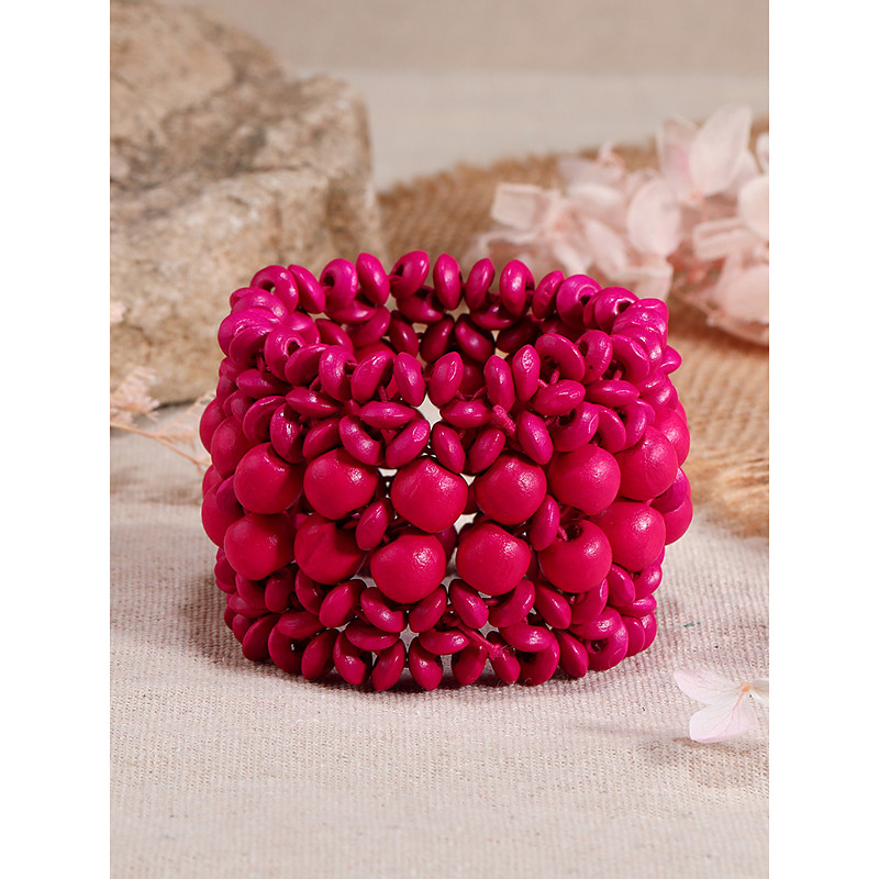 Handmade Wooden Beaded Bracelet for Women - Boho Chunky Stretch Bra...