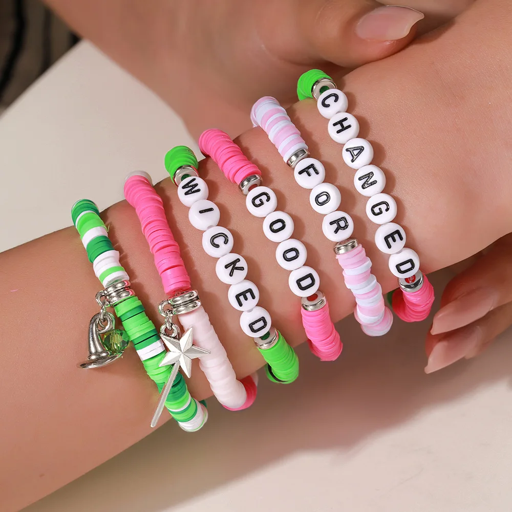 Friendship Bracelet Change for Good Green Pink Rhinestone Crown Hat with Wicked Bracelets Christmas ...