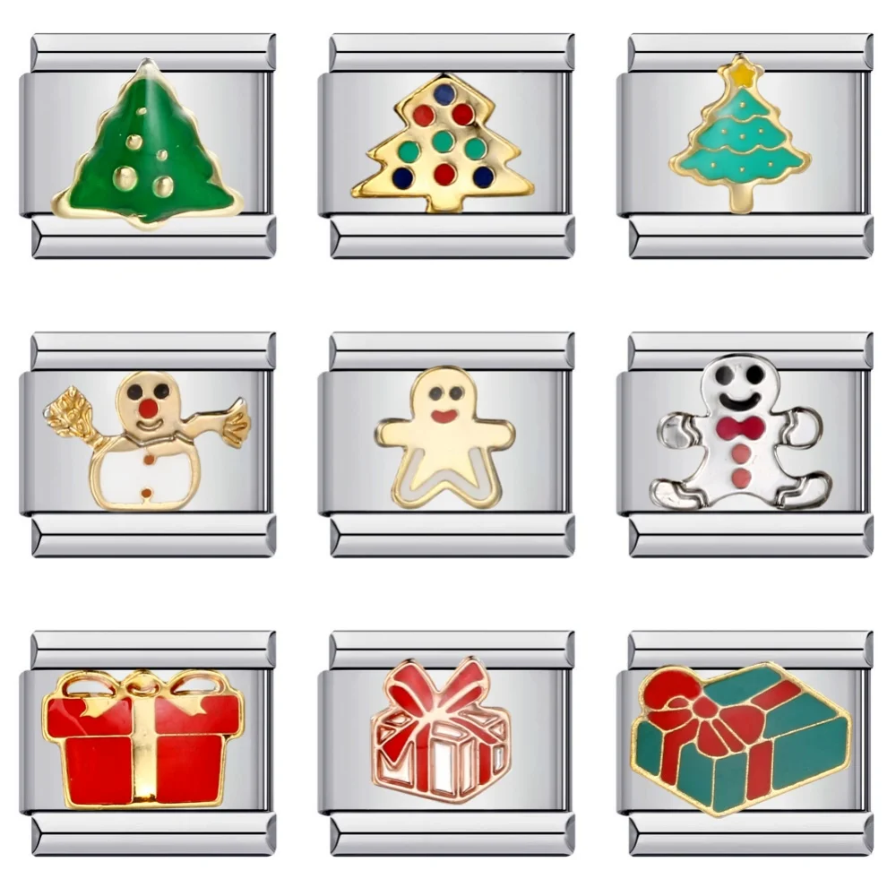 Christmas Gifts Tree Snowman Santa Hat Charm Italian Links Fit 9mm Bracelet Stainless Steel Fashion ...