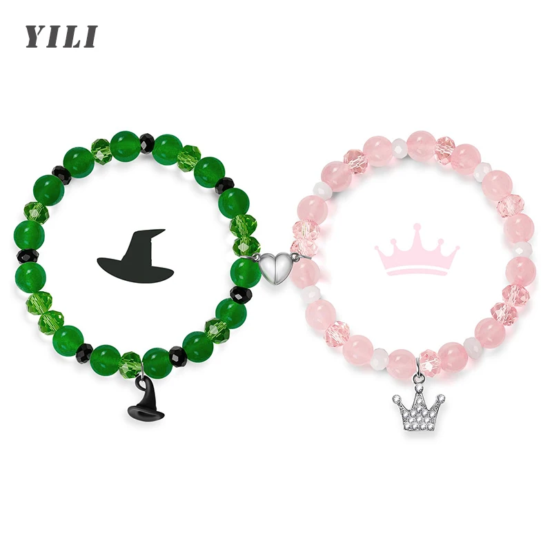 Elphaba Galinda Friendship Matching Bracelet Natural Stone Beads Crown Witch Hat Bff Bracelets Wicke...