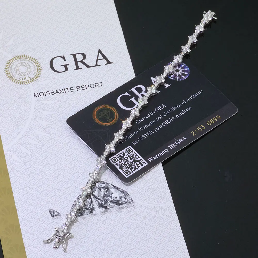 In Stock Claw Setting Lab Diamond 925Solid Silver Bracelet Hip Hop Jewelry D VVS Moissanite Diamond ...