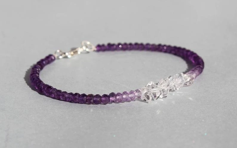 Amethyst Bracelet with Herkimer Diamond, February Birthstone, Herkimer Bracelet, Amethyst Bracelet, ...