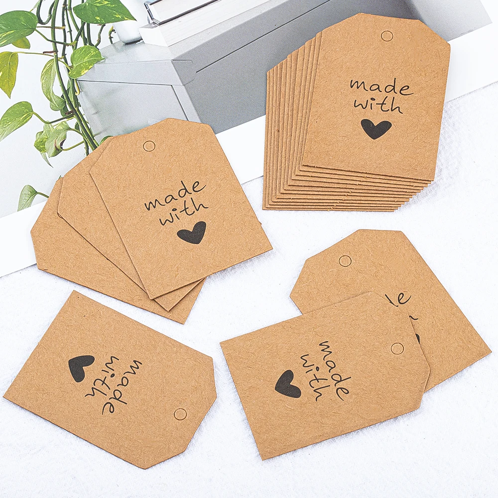 50pcs 4.2x5.5cm Hanging Lables Made with Love Kraft Paper Tag 10 me...