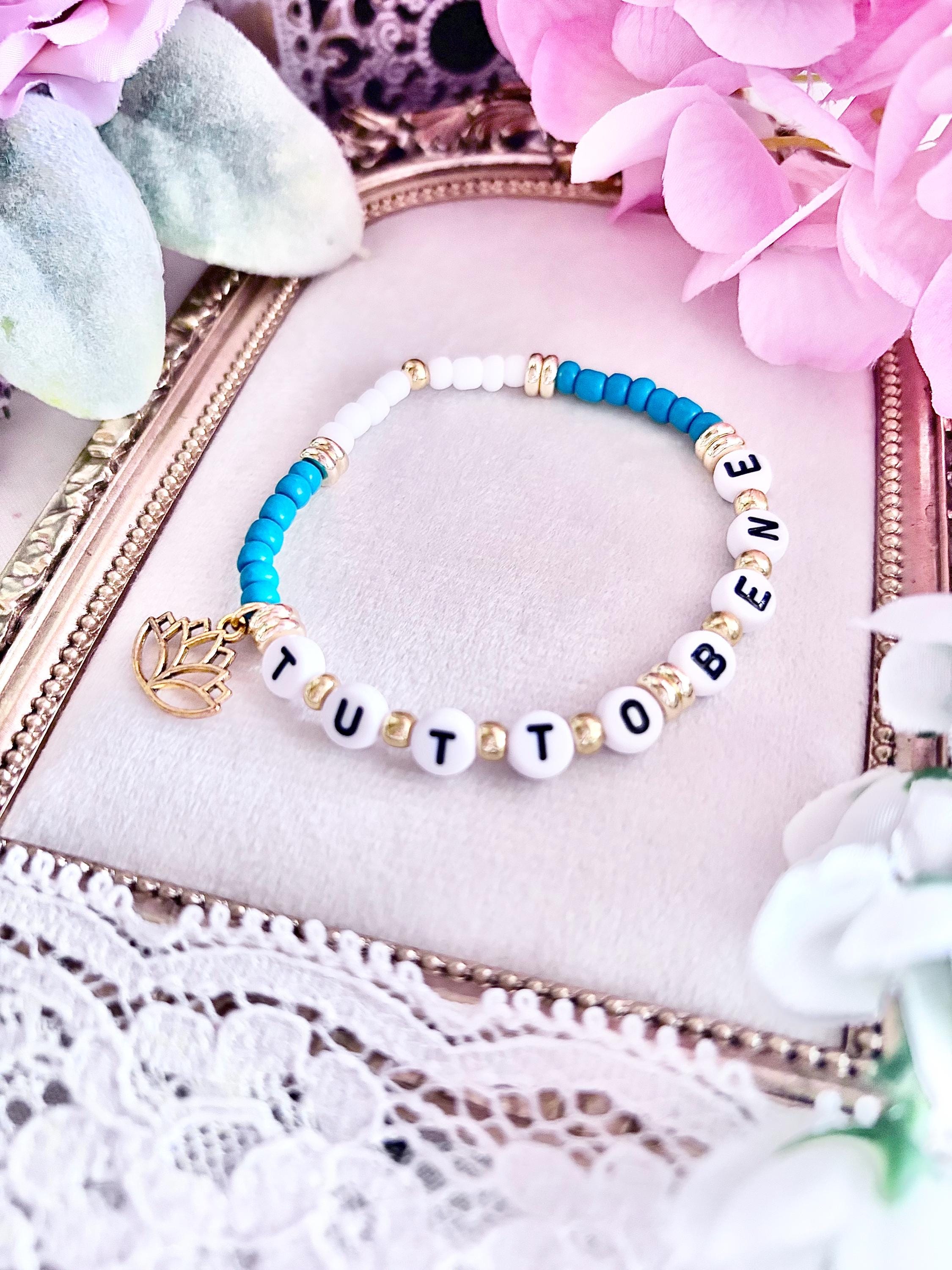 Tutto Bene Italian Phrase Peaceful Lotus Flower Charm Beaded Bracel...