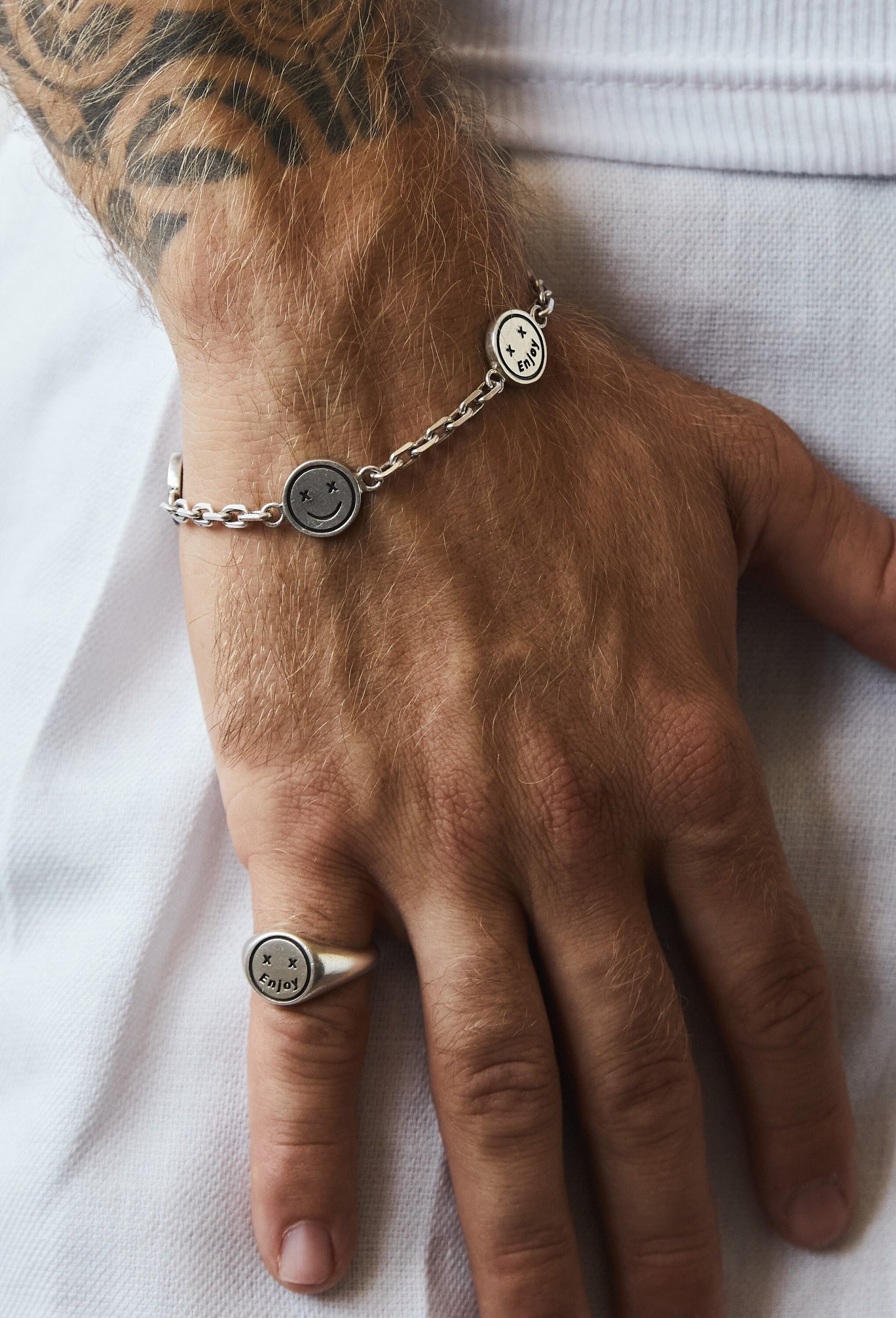 The Silver Smiley Bracelet is a delightful and lighthearted piece of jewelry that encapsulates the s...