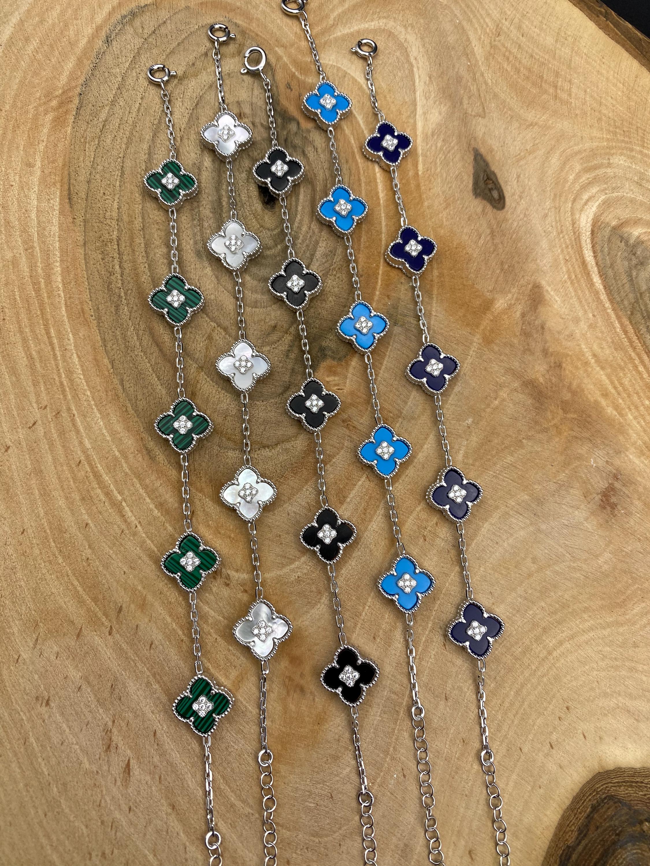 Clover Bracelet 14K Gold, White Clover Bracelet, Black Clover Bracelet, and four-leaf clover bracele...