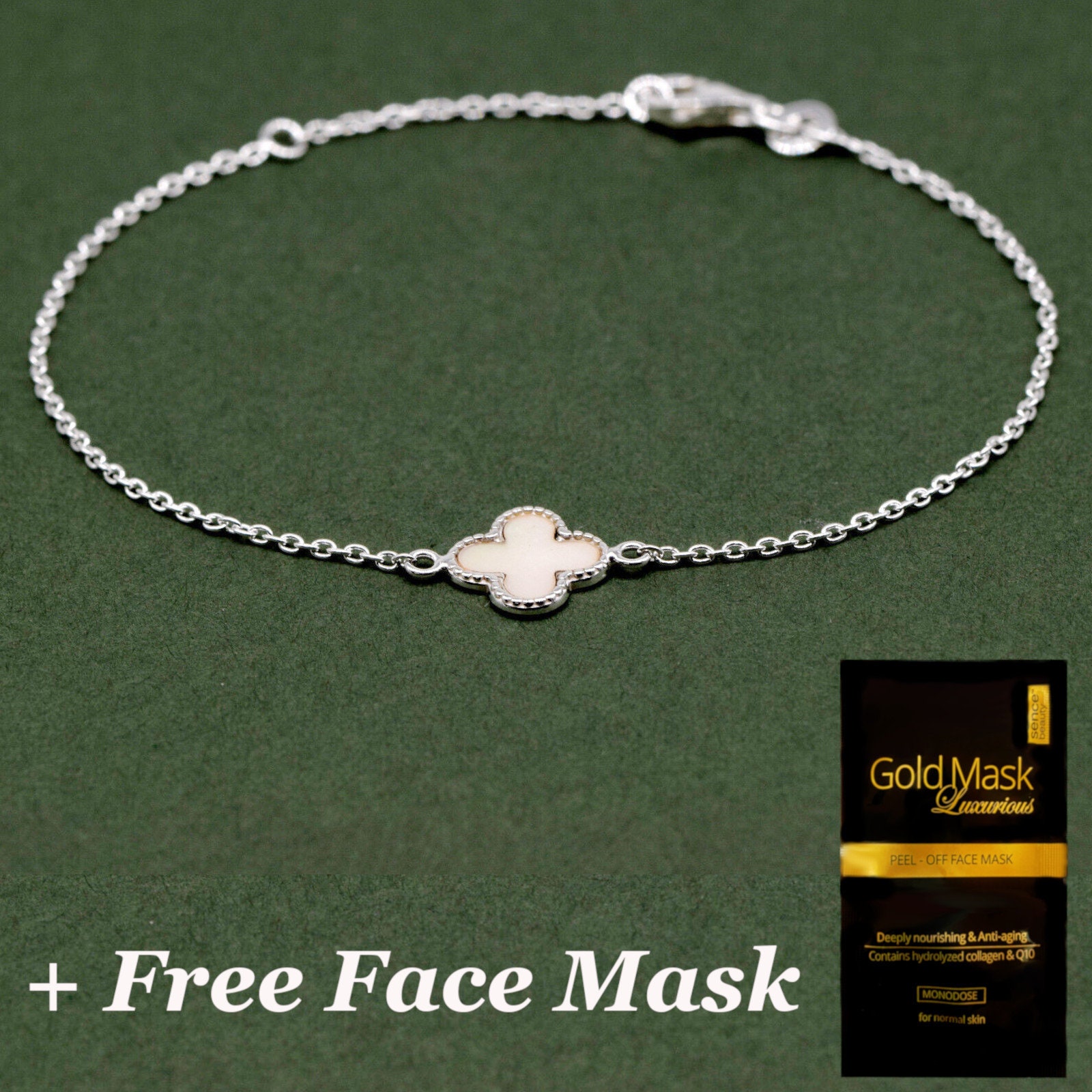 FOUR LEAF CLOVER BRACELET, GOLD BRACELET, HANDMADE JEWELRY BRACELET DETAILS - S925 Sterling silver o...