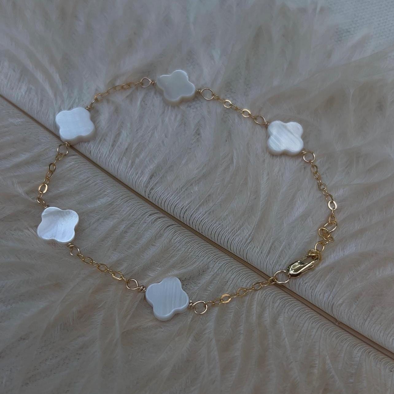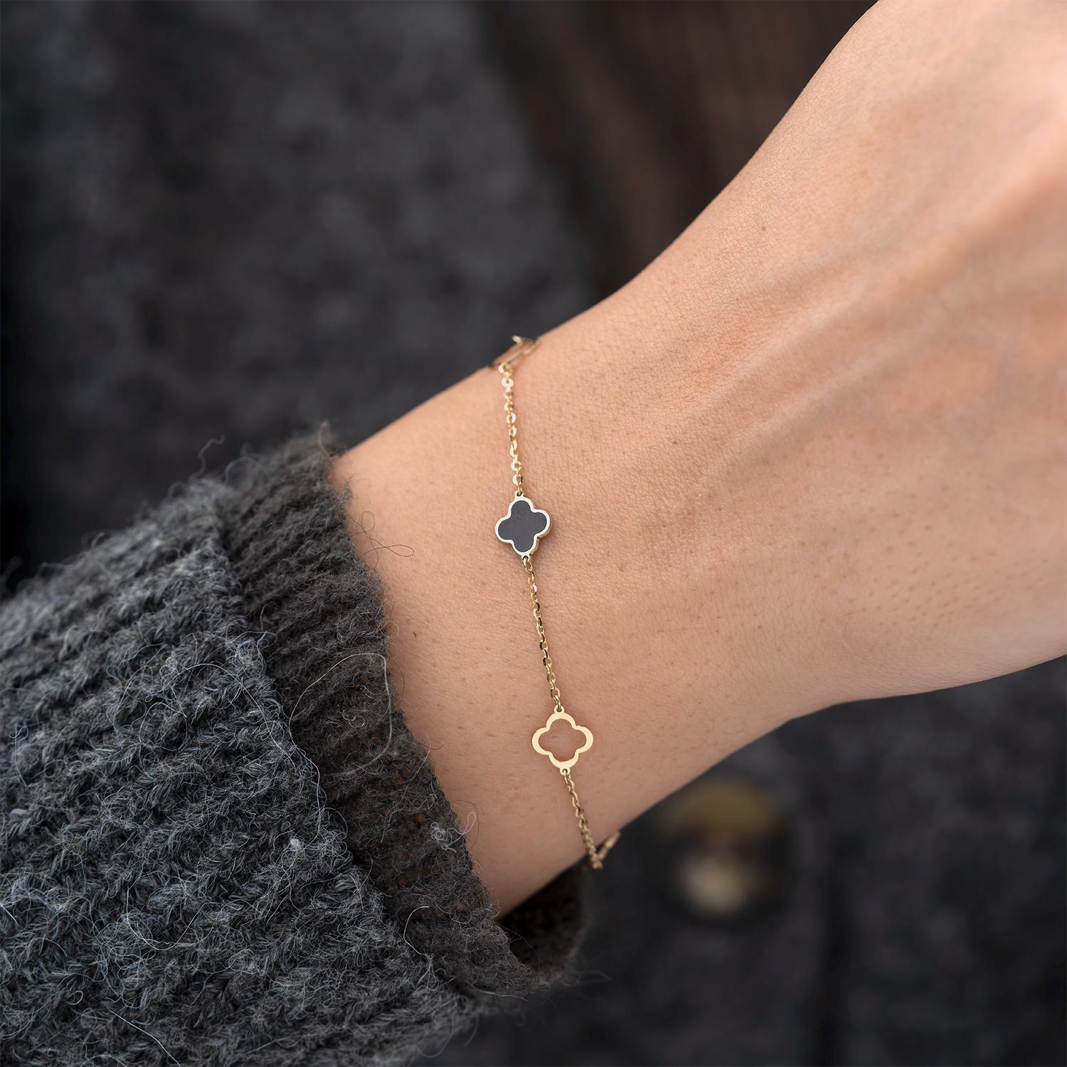 Clover Bracelet 14K Gold, White Clover Bracelet, Black Clover Brace...
