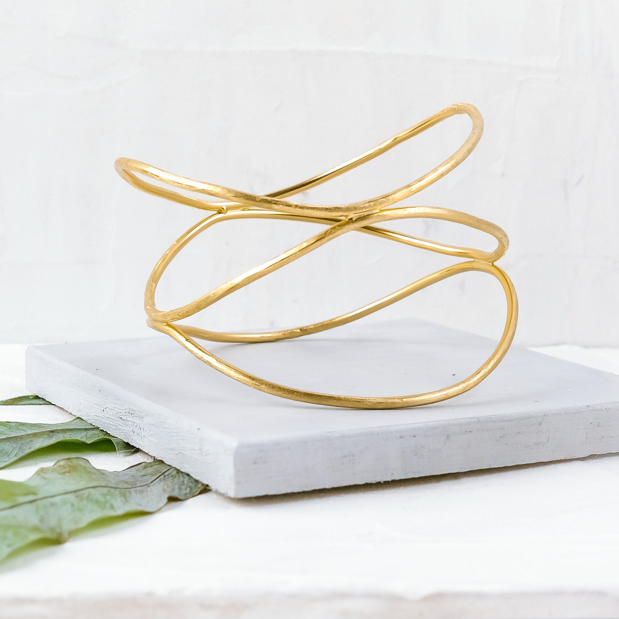 Minimalist Large Gold Bangle Bracelet / Gold Statement Light Bangle - Minimal and Large Gold Plated ...