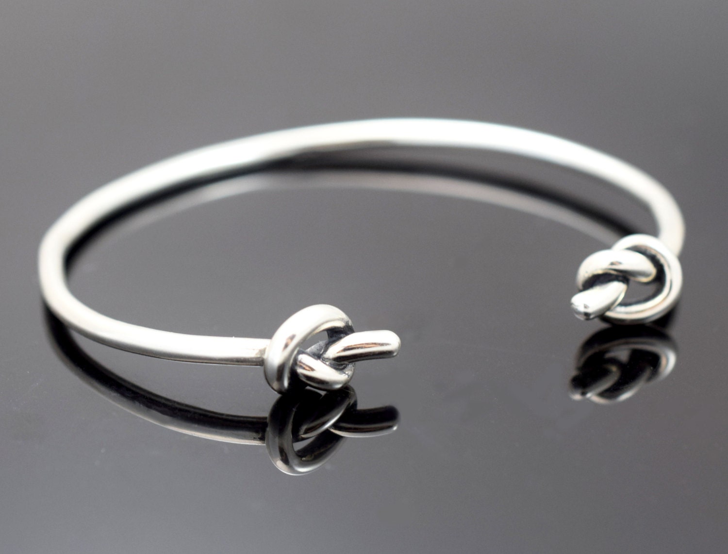 Sterling Silver Love Knot Bracelet- Silver Knot Cuff Bracelet, Brid...