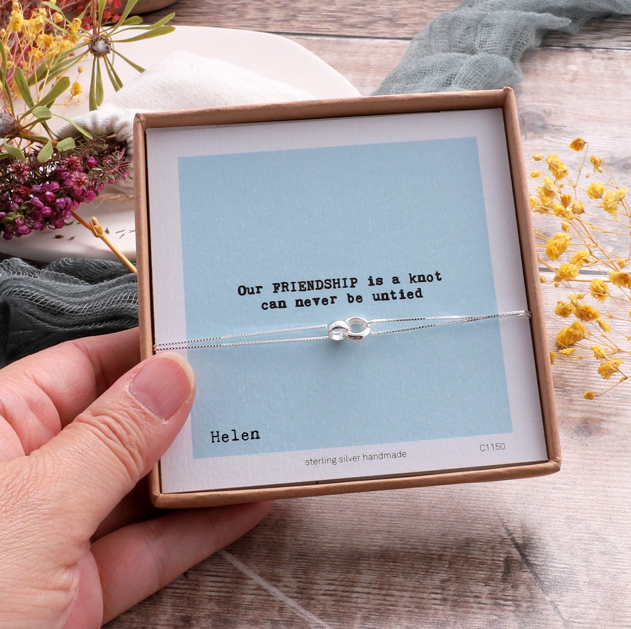 "The perfect gift for a friend - the friendship knot bracelet in sterling silver, presented on ...