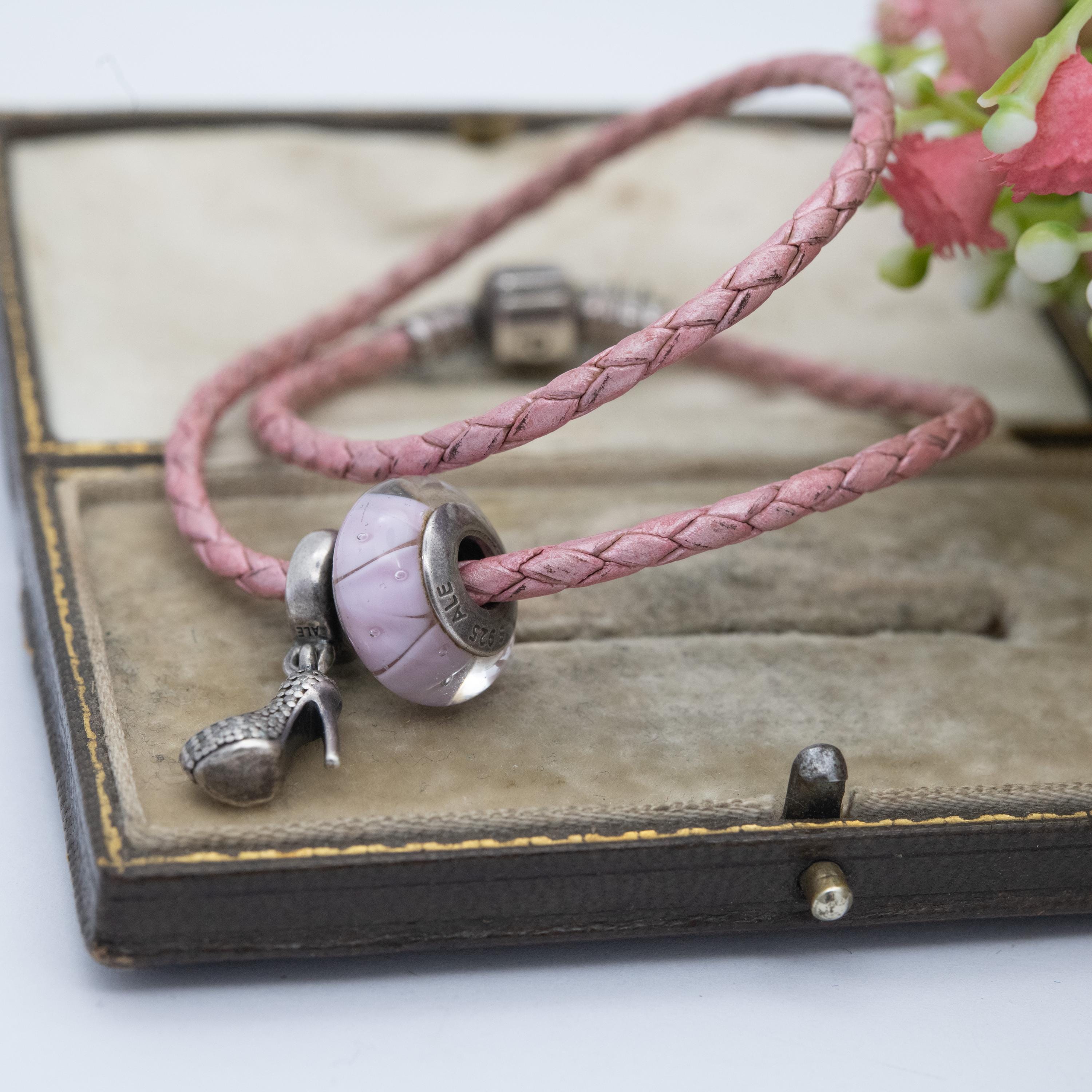 "A lovely sterling silver leather double bracelet by Pandora, with 2 charms. This would be a gr...