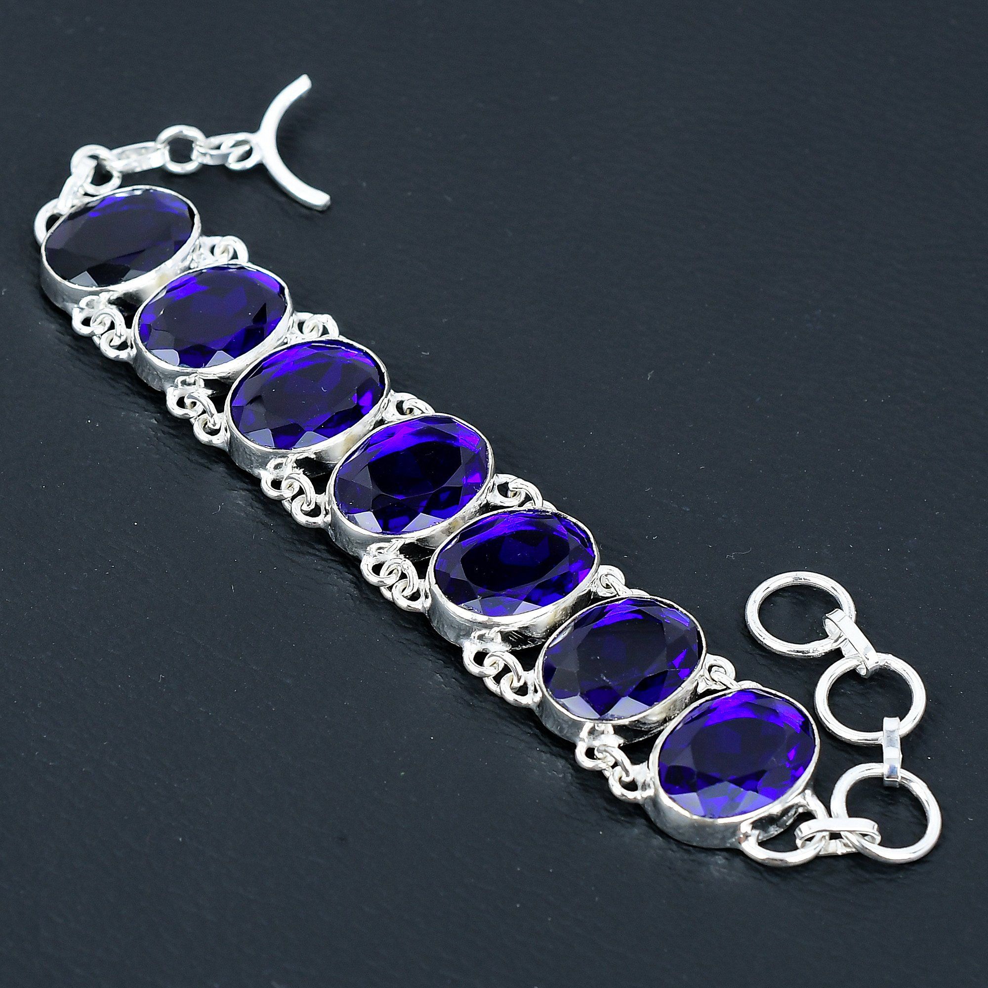 Blue Sapphire Gemstone Bracelet, 925 Sterling Silver Jewelry Bracel...