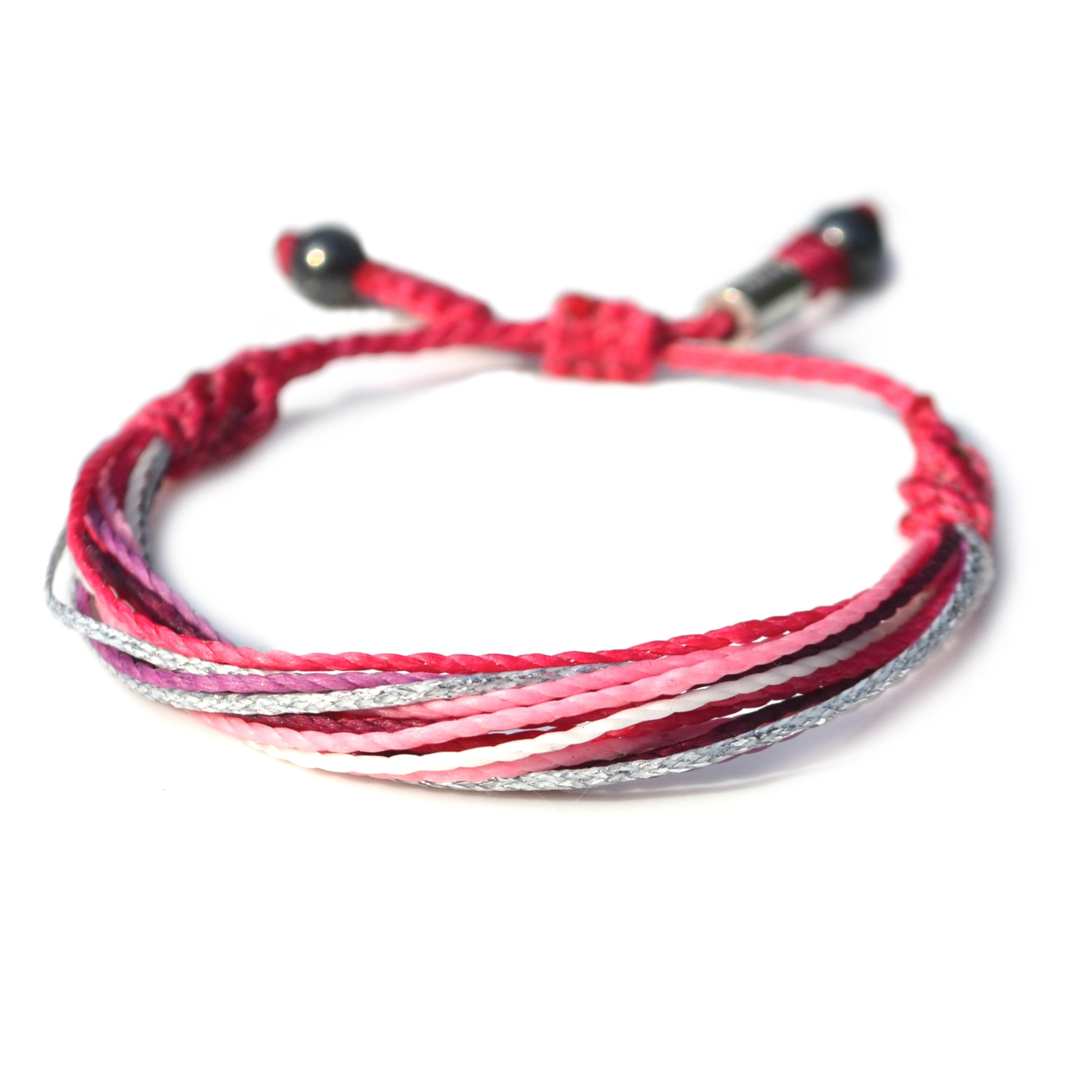 PINK GIRLS BRACELET: This hand-knotted, unisex, woven bracelet includes two genuine Hematite stones ...
