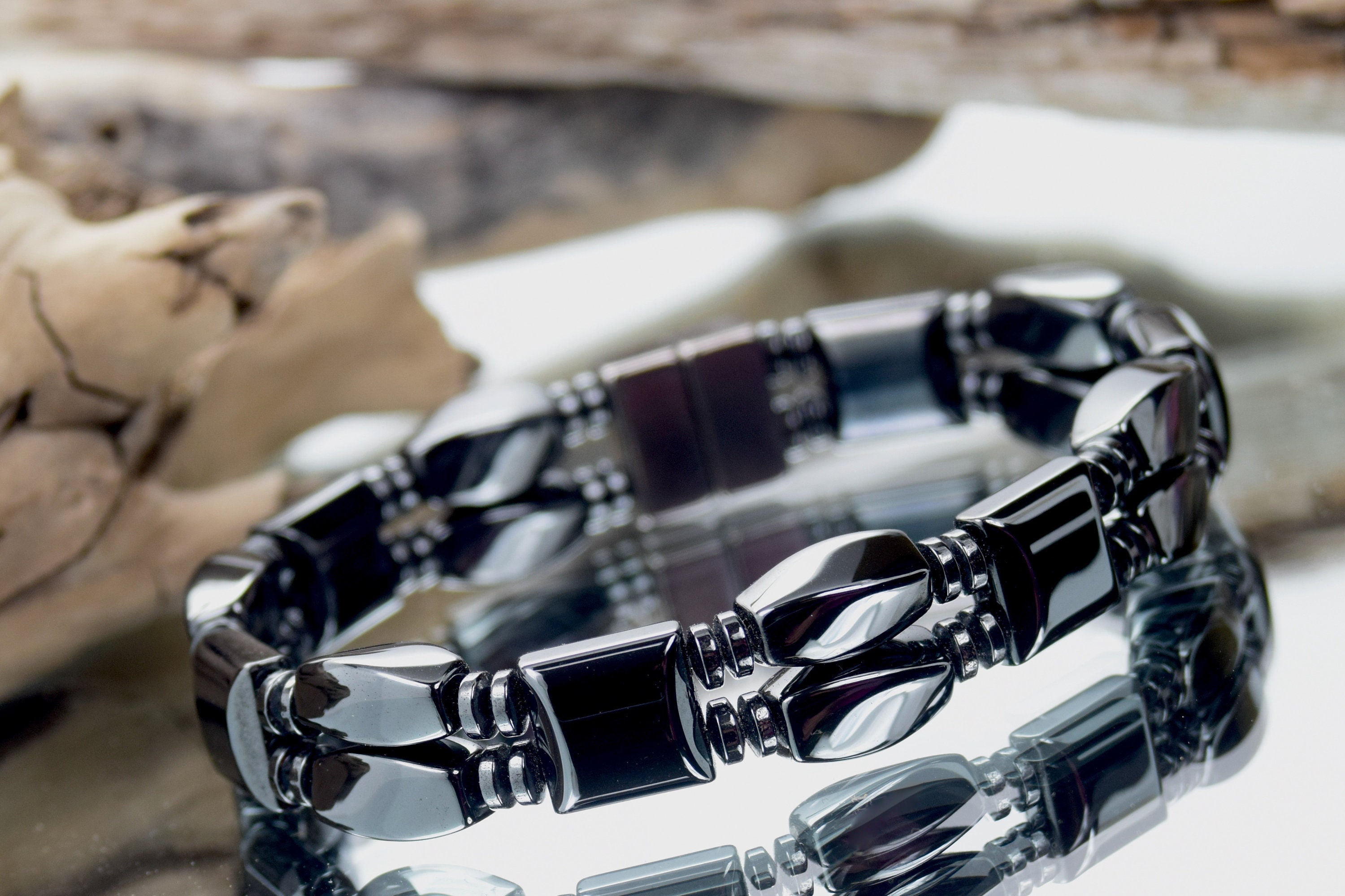Magnetic bracelet/Mens Black magnetic hematite stones/Extra Strengt...