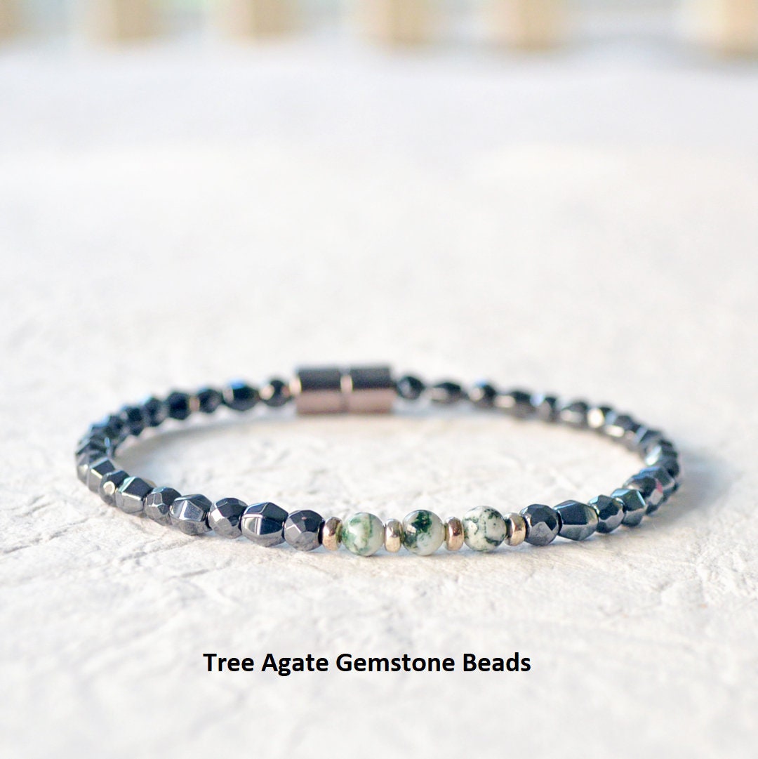 "This magnetic therapy bracelet for women is handcrafted with black magnetic hematite and your ...