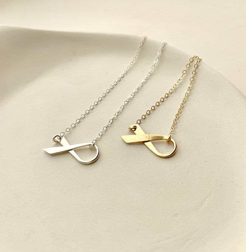Breast Cancer Awareness Ribbon Bracelet. A single piece of solid Sterling Silver, 14k Gold Filled or...