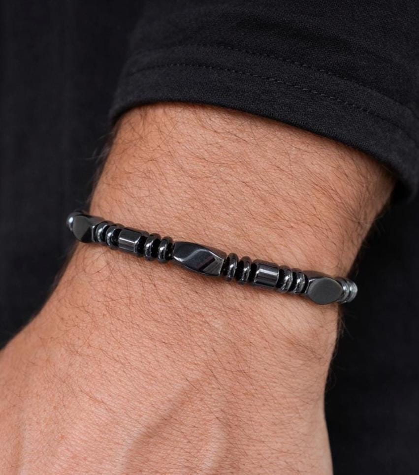 "This classic magnetic bracelet is handcrafted with genuine earth-born magnetic hematite stones...