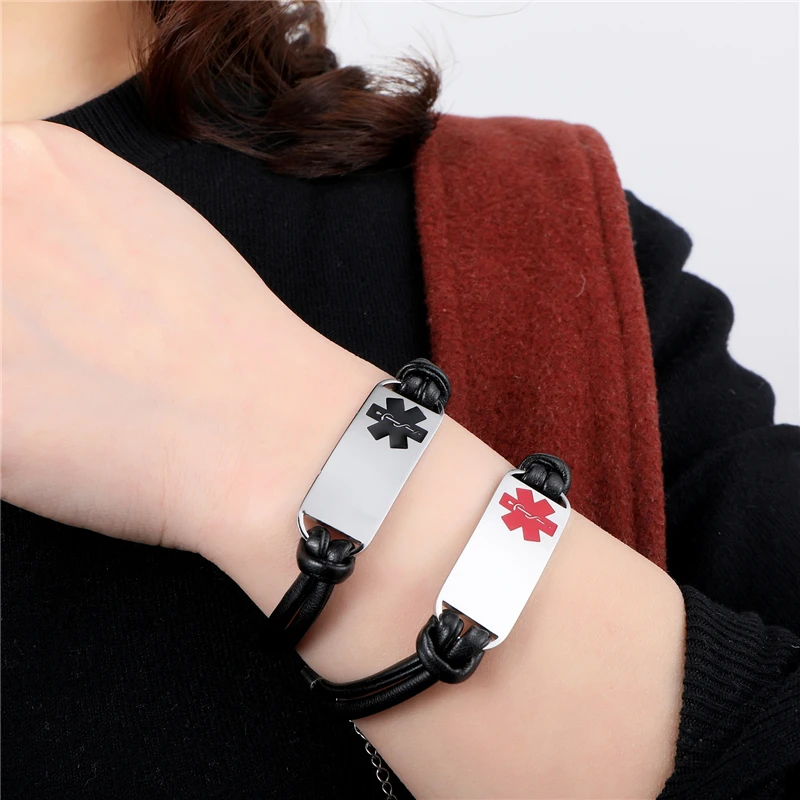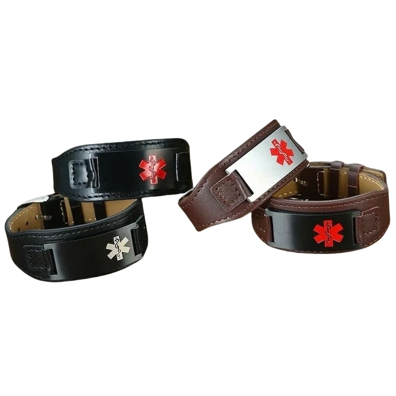New Adjustable Leather Bangle Colorful Medical Alert Engraved Wrist...