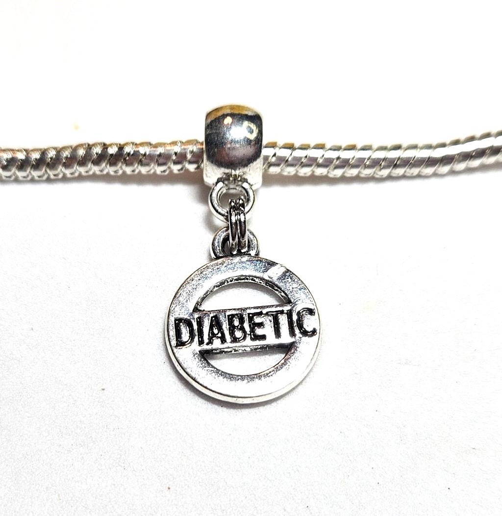 Diabetic Medical Charm, Medical Alert Charm, Diabetic Charm, Dual Sided Charm, Dangle Charm Fits Pan...