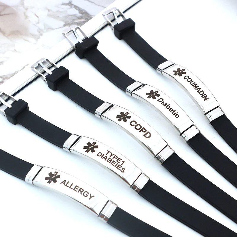 Diabetic Medical Alert Bracelet Badge Survival Silicone Band Silico...