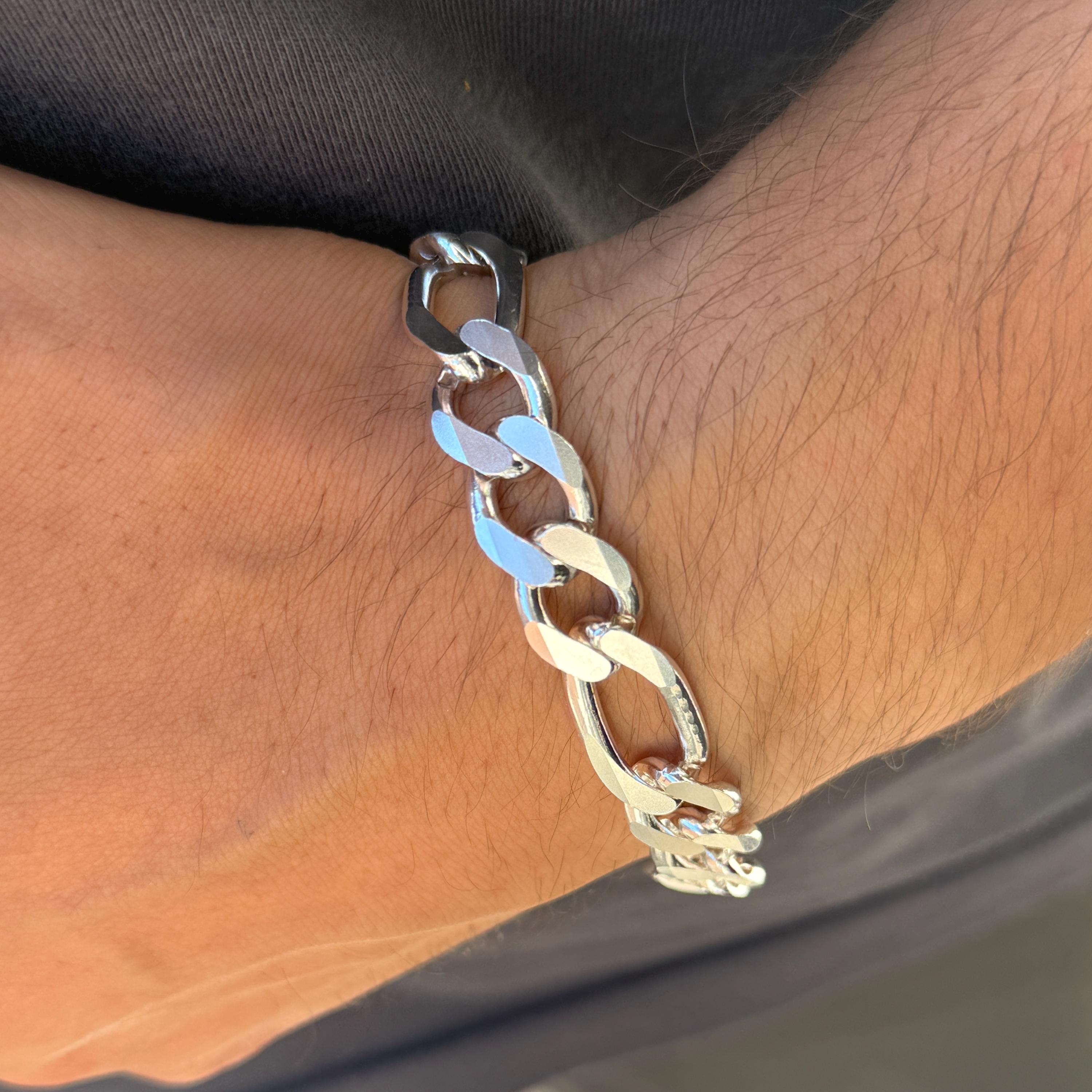 Solid Silver Curb Chain Bracelet, 10MM Figaro Link Bracelet, Silver Bracelet Men, Thick Bracelet Men...