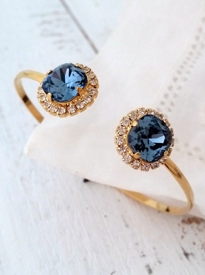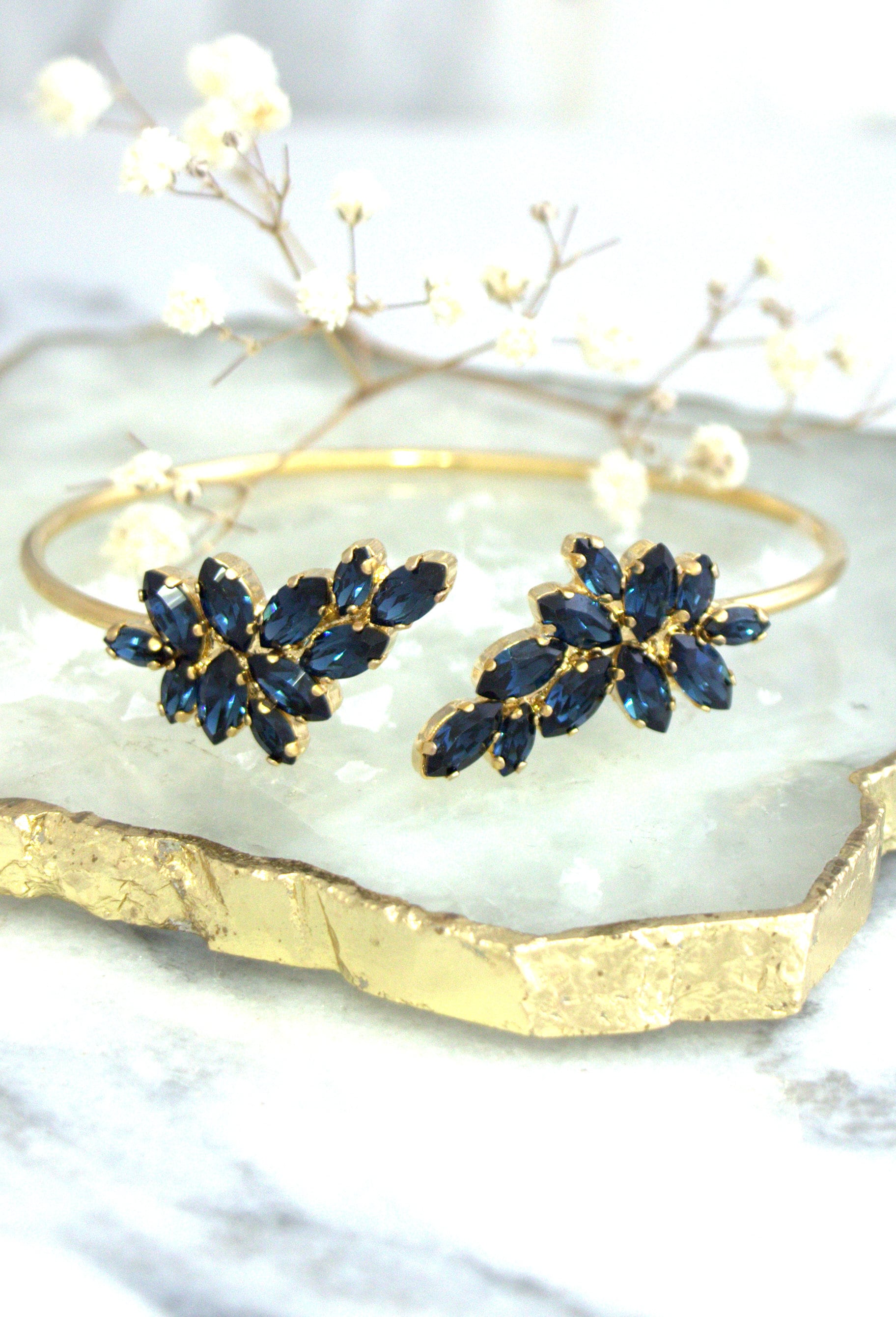 "Blue Navy Bridal Bracelet, Navy Blue Bracelet, Crystal Crystal Cuff Bracelet, Bridal Blue Brac...
