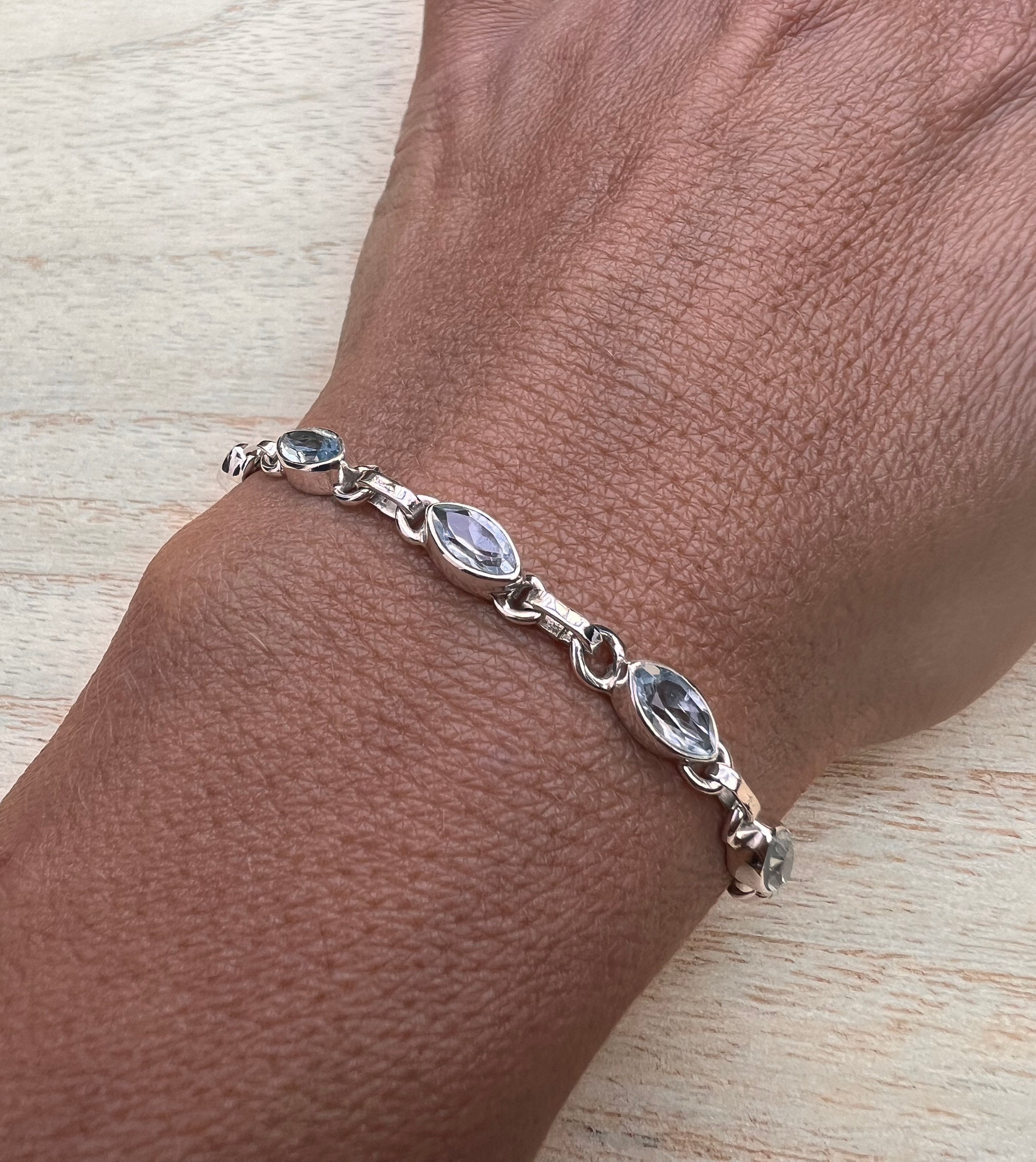 Blue Topaz faceted sterling silver bracelet, Blue topaz sterling si...