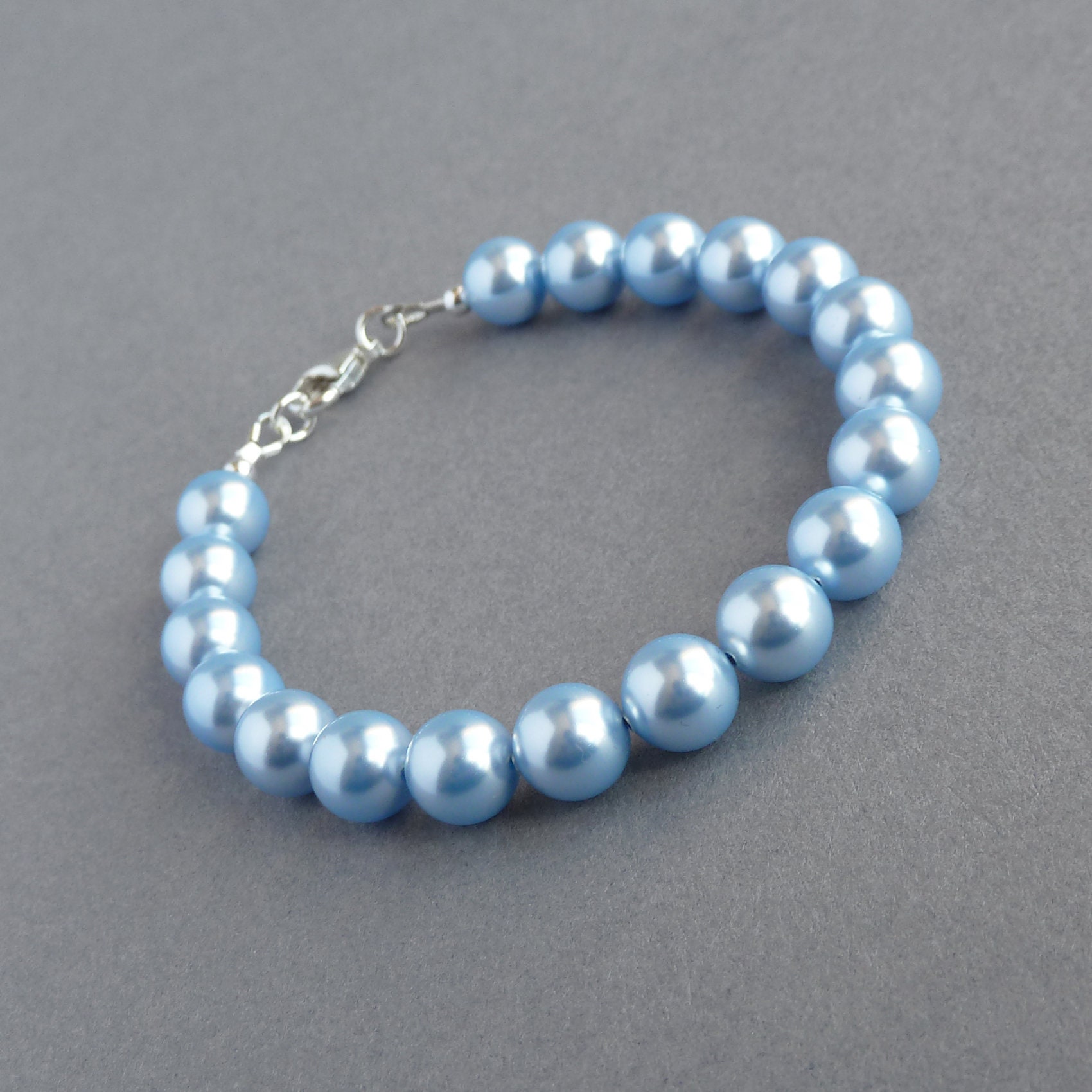 Light Blue Pearl Bracelet - Baby Blue Swarovski Pearl Bridesmaids G...